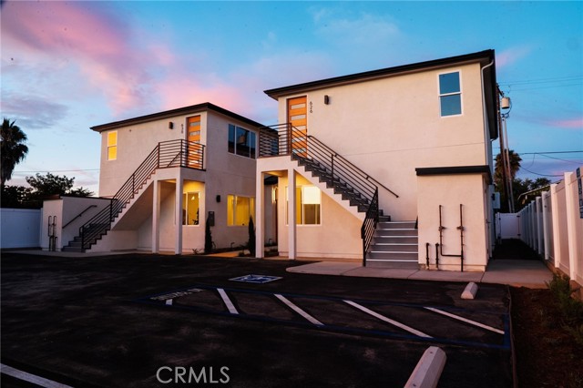 2025 construction quadplex features 2 separate buildings on a large lot with private parking.