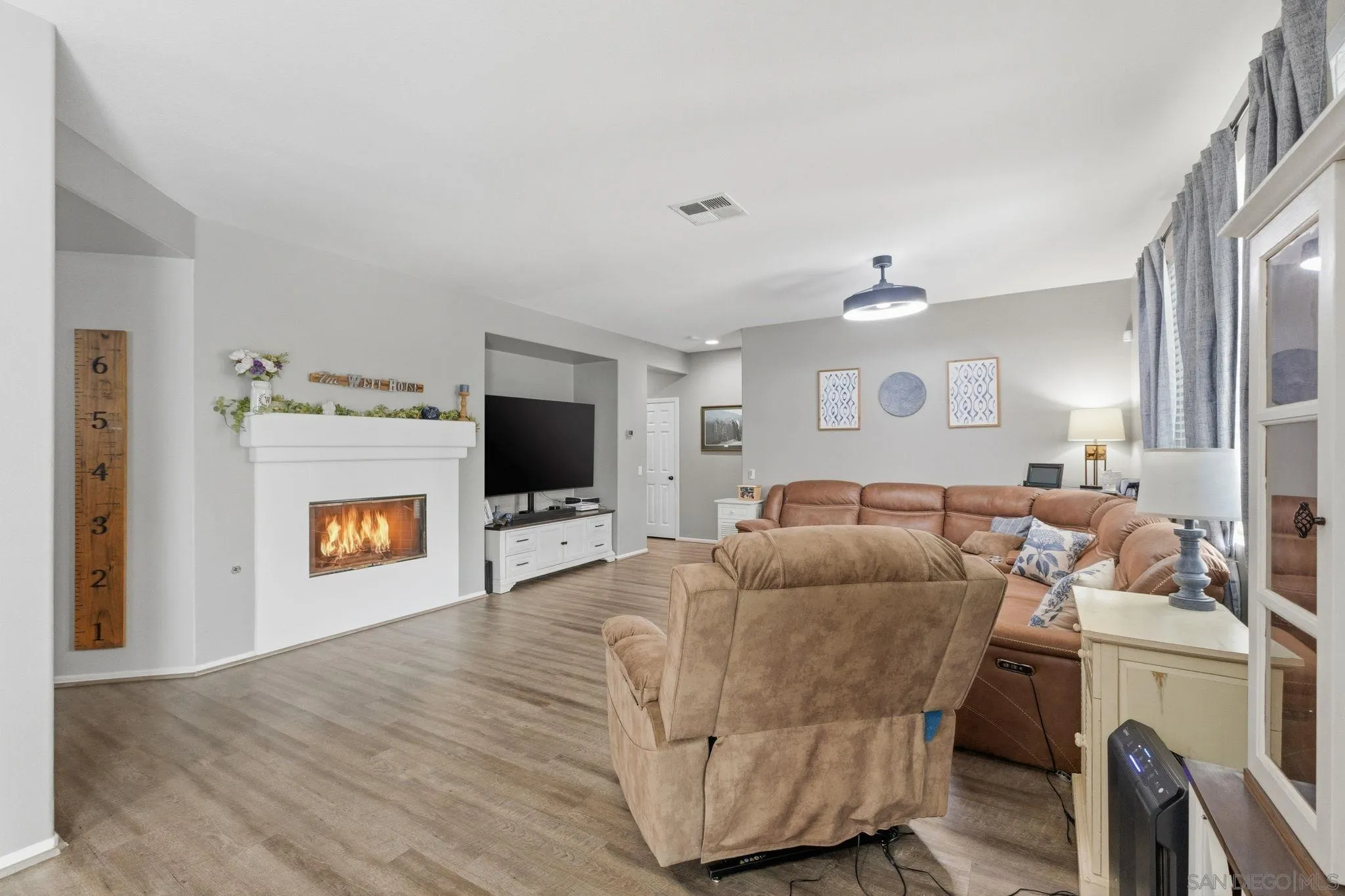This stunning residence offers 5 spacious bedrooms and a resort-style pool and spa, delivering the perfect blend of upscale comfort, elegance, and California indoor-outdoor living designed for both entertaining and everyday enjoyment. Located within the highly sought-after Murrieta School District, this home sits in a desirable, established neighborhood known for its pride of ownership, family-friendly atmosphere, and convenient access to schools, parks, shopping, and dining. Inside, you’re welcomed by a spacious open layout with luxury vinyl plank flooring and soaring ceilings that enhance natural light throughout. The formal living and dining areas offer an elegant space for gatherings, while the family room features a cozy fireplace and connects seamlessly to the kitchen. A main-level bedroom with a full bath provides ideal flexibility for guests or multi-generational living. The kitchen features granite countertops, abundant cabinetry, pantry, and a water filtration system. A dedicated laundry room with storage completes the main level. Upstairs, the primary suite includes a private sitting area perfect for an office or retreat space, plus a spacious ensuite with dual sinks, soaking tub, separate shower, and walk-in closet. Three additional bedrooms complete the second level. Enjoy a private backyard oasis with a sparkling pool and spa, perfect for entertaining or relaxing. Energy-efficient solar and a whole house fan help reduce utility costs. Additional highlights include a 3-car garage, low taxes, and low HOA an exceptional opportunity.