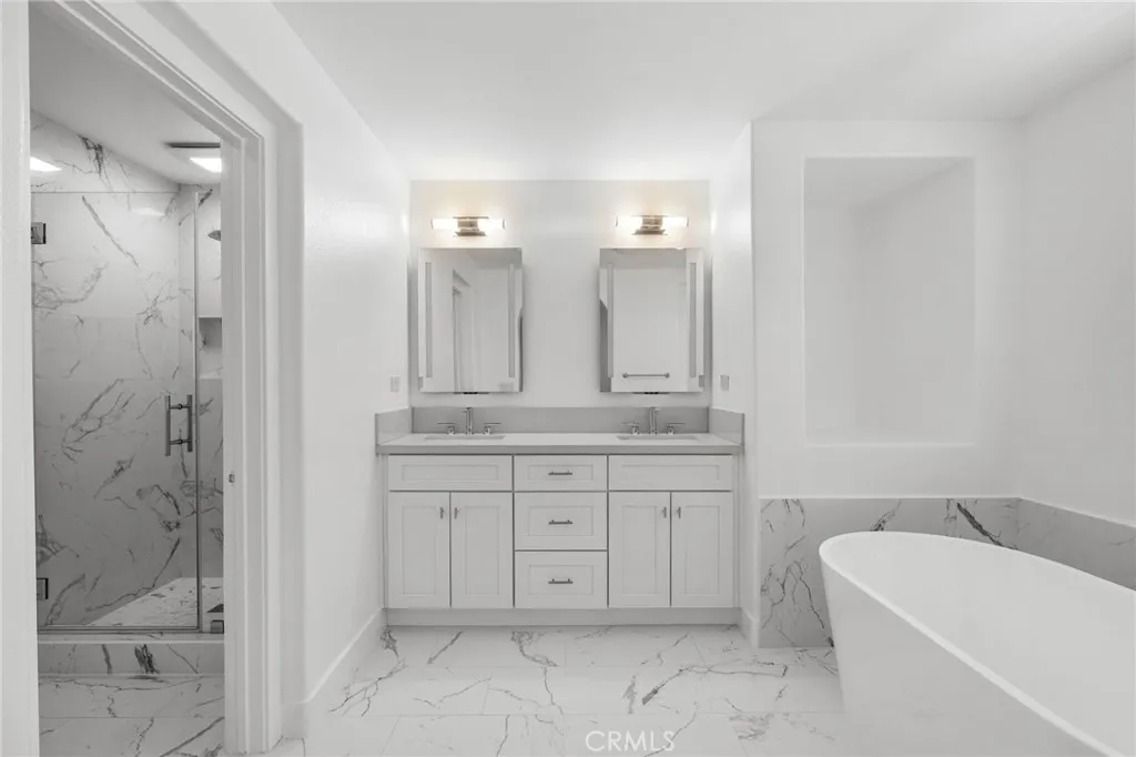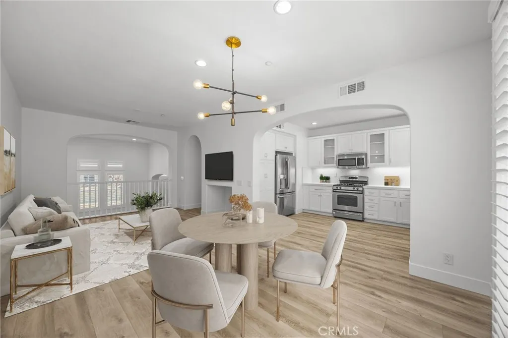 Upgraded to the max, this stunningly gorgeous home possess elegant charm offering modern living at its best. Upon entering, this contemporary split-level light and airy open floor plan with soaring ceilings offers a formal living room overlooking the front patio. The next level showcases a guest bathroom, a versatile family room, a dining area that accesses to the balcony plus a functional and refined kitchen that spotlights newer stainless-steel appliances including the refrigerator, excellent ambient lighting, white custom cabinetry, beautifully designed quartz counters with backsplash. The top floor features a full-sized laundry room and two en-suite masters with the larger room boasting a walk-in closet and luxurious lavatory replete with dual sinks, high-end plumbing fixtures, walk-in glass enclosed shower, freestanding soaker tub and LED voice lighted double mirrors with Amazon Alexa. This layout offers direct access to a 2-car garage that features a sizable bonus storage area for all your furnishings and toys. Well-appointed details throughout also include Ring doorbell, Nest smart thermostat, Recessed lighting, Plantation shutters, Dual-paned windows, Central air conditioning, New flooring, Newer garage door opener that all adds up to contemporary comfort and a convenient life style that this property possesses. Must see this home first when viewing in Owens Cove. This wonderful condo is ideally situated in a serene section of the "Owens Cove" gated-community. Gather with friends and family at the Clubhouse featuring a full kitchen, billiards, card tables, fireplace