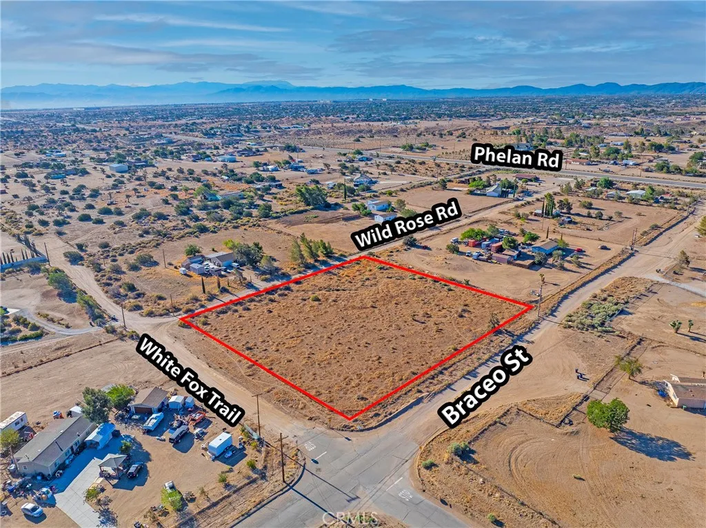 Oak Hills corner lot has WATER METER, Natural Gas and electricity on the street, Corner to paved White Fox Trail, all fenced close Baldy Mesa rd., and Phelan Rd