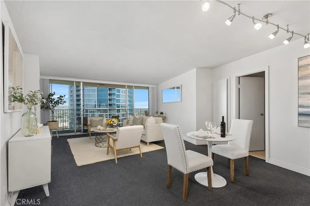Enjoy stunning cityscape and partial ocean views from this beautifully renovated condo in the iconic International Tower on the Long Beach waterfront. This exceptional one-bedroom, two-bath unit offers floor-to-ceiling windows framing panoramic views, perfect for entertaining or relaxing in style. Picture dining al fresco on your private balcony as the city lights sparkle below, or watching the Long Beach Pride Parade right from your home. The interior features carpeted flooring, multiple closets for ample storage, and a convenient stackable washer and dryer. One assigned parking space is included. Located just moments from the beach, Shoreline Village, the marina, and vibrant downtown Long Beach, this home offers the perfect blend of luxury and convenience. Residents also enjoy premium amenities including a heated pool, fitness center, and 24-hour security and on-site management. This is a rare opportunity to live in one of the city's most desirable high-rises.