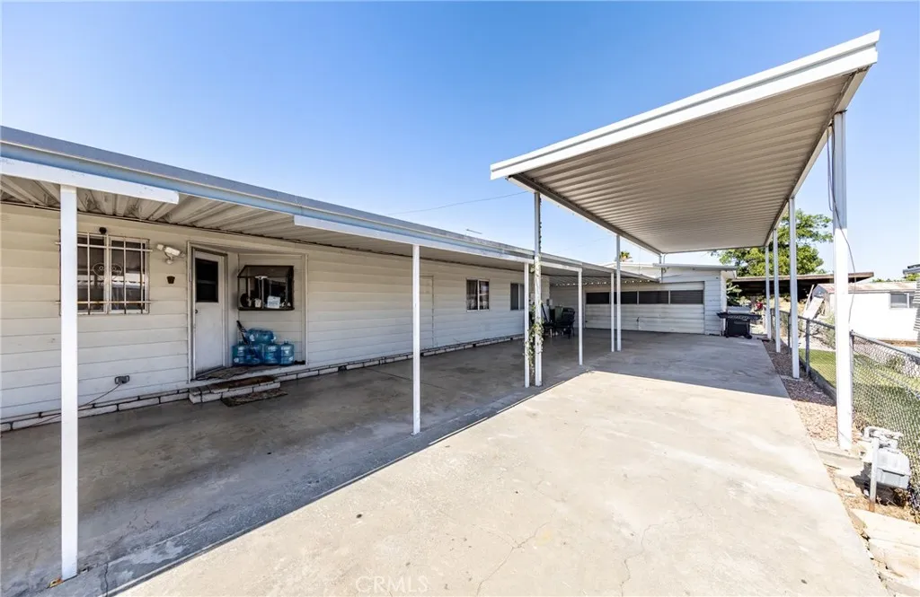 Check out this 3 bedroom, 2 bath home w/covered RV access, a full-length carport and a two-car garage in an all age neighborhood of East Hemet. The home has 1,536 sqft and an enclosed patio room for additional living space. Kitchen w/garden window & a breakfast bar that opens up to the eating area with a built-in hutch and spacious living room w/fireplace. Bedrooms are good-sized, and the primary bedroom has a walk-in closet and separate shower & soaking tub. Solar panels have been installed to keep those electrical bills down. Close to shopping & restaurants. Low taxes and no HOA.