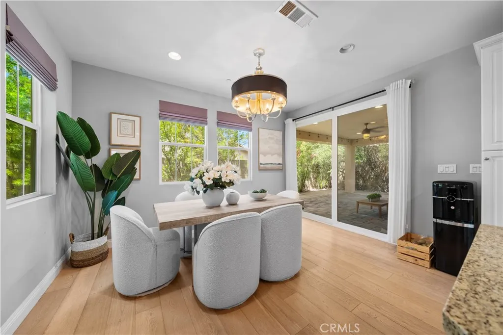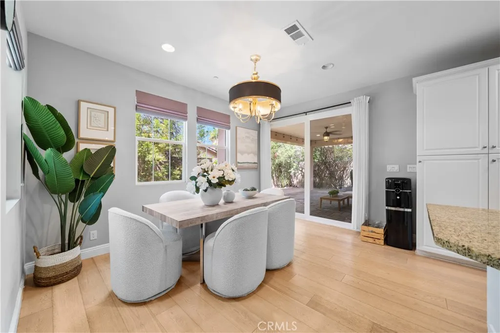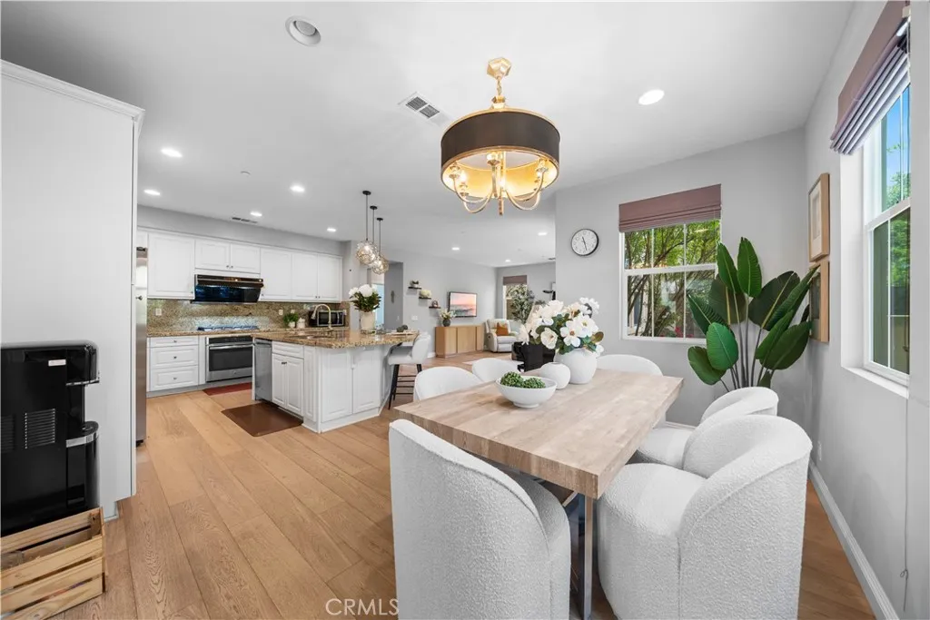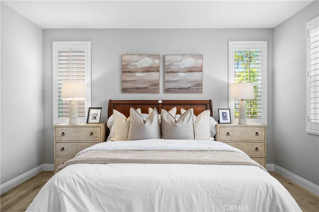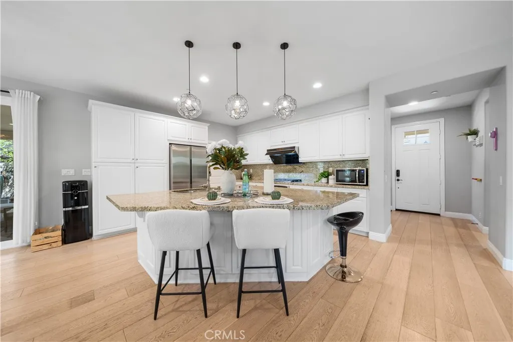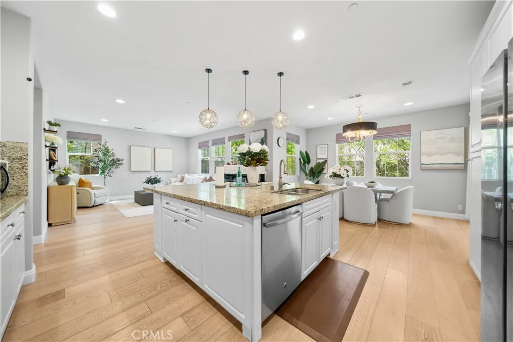 Welcome to this gorgeous turnkey, move-in-ready detached home in prestigious Pavilion Park, featuring a highly desirable open-concept layout with 4 bedrooms and 3 bathrooms, including a main-floor bedroom with a walk-in shower, a bright great room flowing into a gourmet kitchen with an oversized island and stainless steel appliances, upgraded full house wood flooring with easy cleaning and recessed lighting throughout, a spacious master suite with dual vanities and a walk-in closet, a private hardscaped backyard with fruit trees and a built-in BBQ, leased solar panels, a large laundry room, attached garage with storage.Located minutes from nature trails, shopping, and dining, the home provides unparalleled convenience and relaxation. Residents enjoy seven pools, extensive walking and biking trails, and numerous amenities designed for joyful living. With easy access to I-5 and I-133 and close proximity to Woodbury Town Center, this home is ideally situated for a balanced life of work and leisure. Zoned for Beacon Park K-8 and Portola High School, this property is ideal for families seeking a dynamic, family-friendly community.