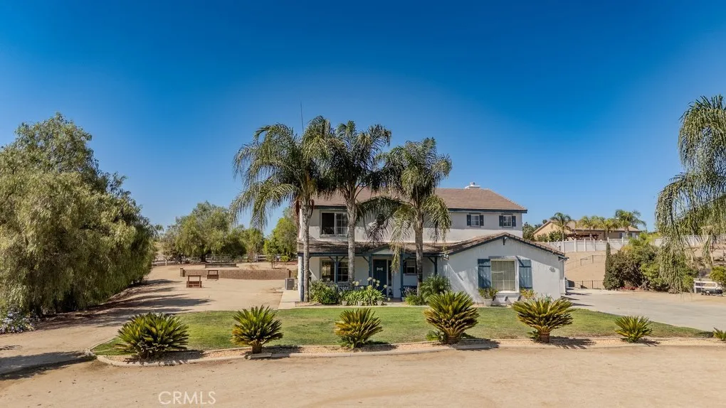 WELCOME HOME TO YOUR MASSIVE URBAN PARADISE !! 4150 SQUARE FEET AND OVER AN ACRE OF GATED SERENITY AND BEAUTY..AND ONLY MINUTES FROM THE REST OF THE URBAN WORLD !! 4 BEDROOMS AND 3 1/2 BATHS ..4 CAR GARAGE..PAVED RV SPACE WITH AUTO LIFT POTENTIAL AND UPGRADES ALREADY IN PLACE..BACKYARD HAS ENOUGH ROOM TO DREAM ON A GRAND SCALE ..POOL..PICKLE BALL..MULTIPLE ADU.. OUTDOOR KITCHEN STYLE COVERED PATIO WITH BIG TV, FIRE PIT, BBQ MISTER SYSTEM, FANS AND EVEN MOOD LIGHTING BEGGING FOR WEEKEND GATHERINGS AND WEEKDAY ESCAPES ..COZY COVERED SPA TO SOOTH THE ACHES AND PAINS WHILE ENJOYING THE VIEWS OUT BACK... LETS GO INSIDE TO THE FANTASTIC CHEF KITCHEN WITH LOTS OF STAINLESS AND GRANITE, LARGE ISLAND, WALK IN PANTRY AND STORAGE GALORE.. WANDERING INTO THE BRIGHT AND OPEN FLOORPLAN YOU'LL NOTICE THE EXTEREMLY FUNCTIONAL LAYOUT ON THE GROUND FLOOR AND THE SUBTLE PATH TO THE 2ND FLOOR ...WHERE THE 3 SPACIOUS BEDROOMS AWATE YOUR FAMILY AND FRIENDS ...EACH WITH ITS OWN BATHROOM GYM / EXERCISE ROOM, STUDIO, HOME OFFICE...ROOM FOR ALL OF THEM... NEXT UP--AN INVITING MAIN SUITEWITH FIREPLACE, WALK IN CLOSETS, DUAL VANITIES ALL LEADING TO WALK IN SHOWER AND SEPERATE SOAKER TUB. TWO TWIN OVERSIZED GARAGES HOLD 4 VEHICLES HAVE BUILT IN FEATURES, SINK, 220 ELECTRIC AND LOTS OF EXPANSION POTENTIAL.. BACK RV SLAB HAS BEEN CUSTOM REINFORCED FOR CAR LIFT--12" CONCRETE-- HOBBY AUTO RESTORATION AND REPAIR MECCA-- AND A LOOOONG DRIVEWAY LEADS TO THE HOME FOR EZ PARKING FOR LOTS OF FRIENDS. COME VISIT THE STYLE AND VALUE PERRIS OFFERS ...THE NEW HOME BUILDERS SEE IT.. AND ENJOY THE BENEFITS OF BEING UR