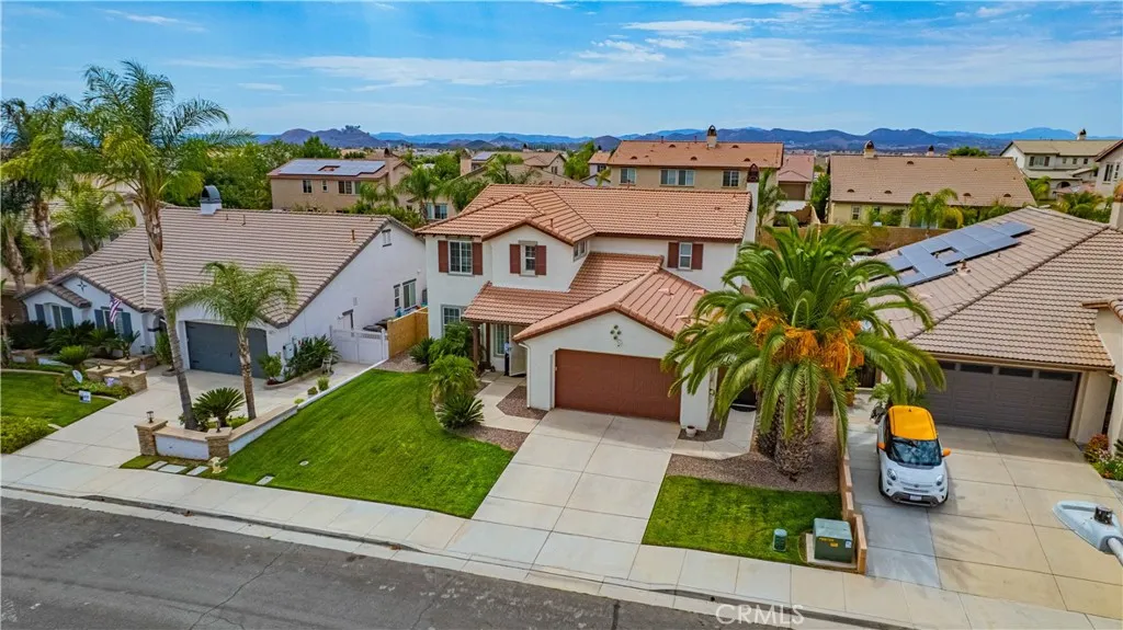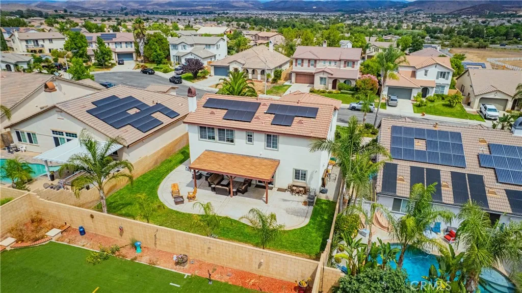 **SELLER TO PAY OFF SOLAR POWER PURCHASE AGREEMENT IN FULL AT THE CLOSE OF ESCROW** This Winchester Luxury Home with Designer Upgrades & Pool-Sized Yard is offered at $679,900! This stunning 5-bedroom, 3-bath home offers luxury, space, and unbeatable value! Nestled on a quiet cul-de-sac in Winchester, this 3,212 sq. ft. home features a beautifully remodeled kitchen with white quartz counters, black granite sink, stainless steel appliances, large island with bar seating, and wine fridge. Enjoy elegant touches throughout including luxury vinyl plank flooring, custom black barn doors, and designer lighting. The spacious family room includes a custom bar and second wine fridge perfect for entertaining! Upstairs, the oversized primary suite boasts a large walk-in closet and spa-like bath with a sunken tub and separate shower. The pool-sized backyard offers a covered patio, lawn, and privacy slope. Additional highlights include a 3-car tandem garage with EV charger, solar, whole house fan and water softener systems. Conveniently located near Temeculas shopping, dining, and entertainment. Additional features include: Solar, 3-car tandem garage with storage racks and EV charger, and paid off ADT security system. Buyer must pay monthly subscription. Home also features a new water filitration/softener system. Close to the heart of Temeculas wineries, shopping, breweries, and exciting new restaurants, this home truly offers the best of both comfort and convenience. Dont miss your opportunity to make it yours!
