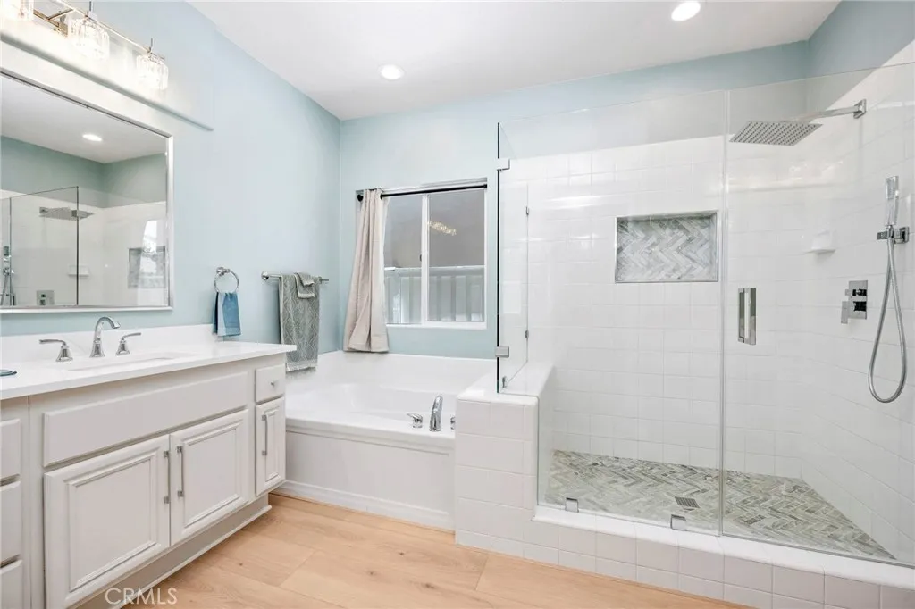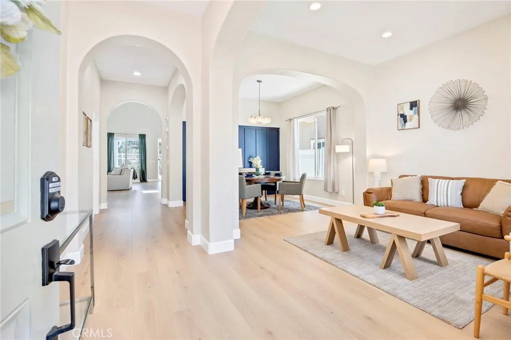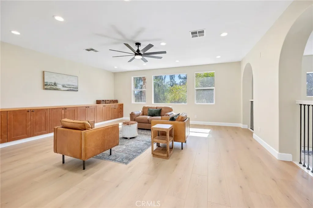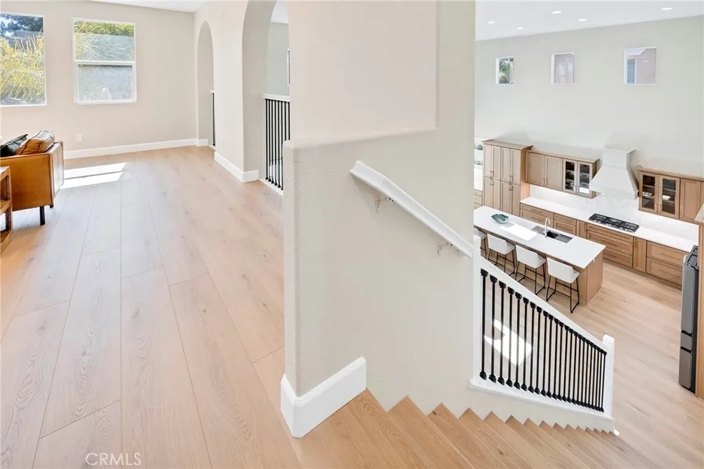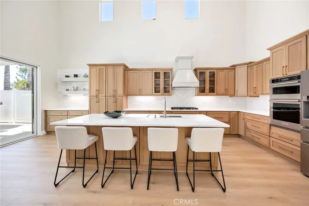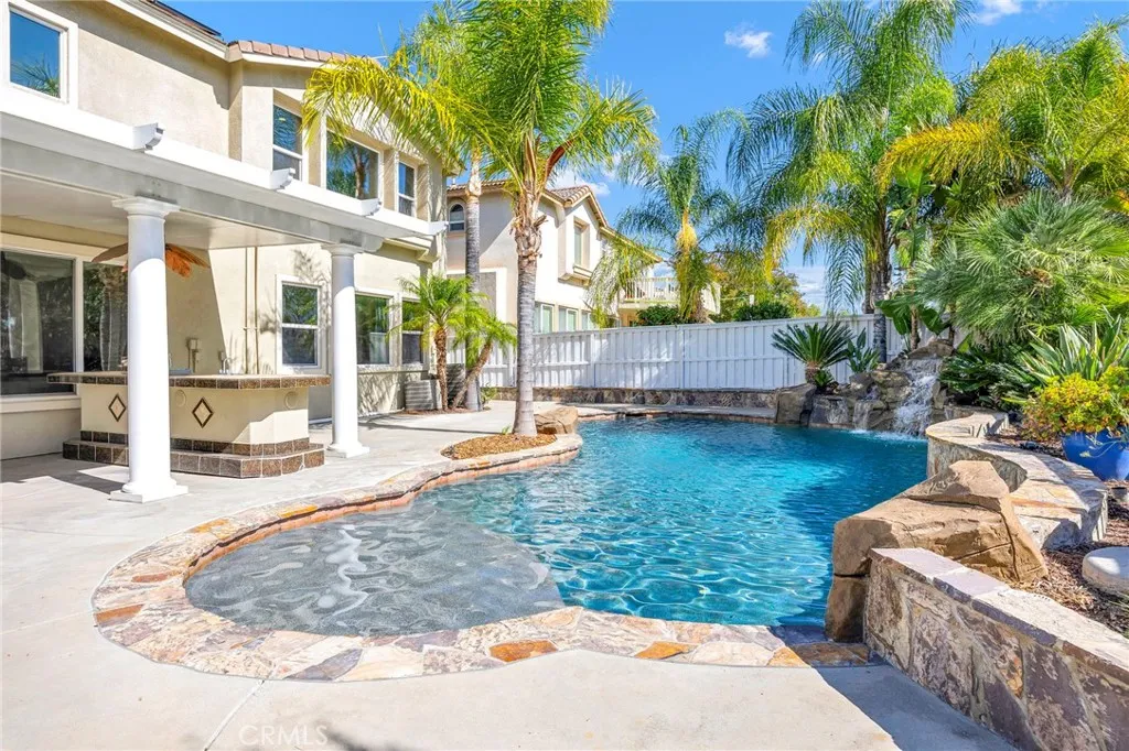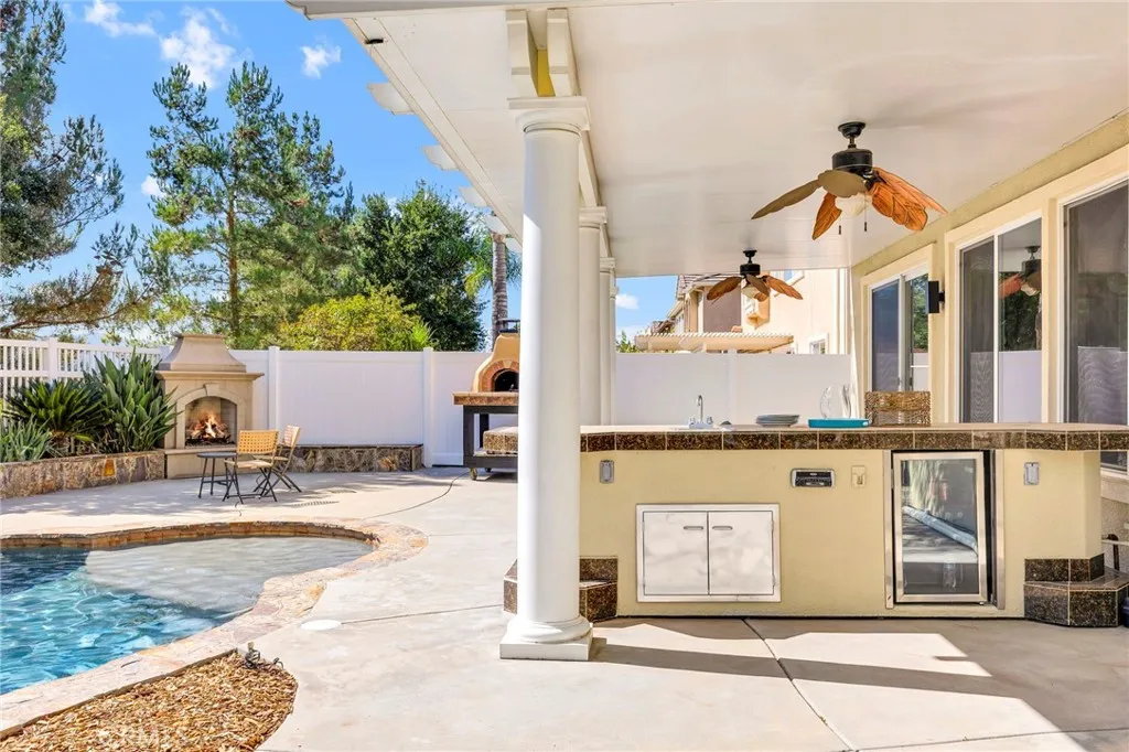Newly renovated top to bottom, executive pool home in the highly sought-after neighborhood of Paseo Del Sol. Enjoy the sounds of the pool waterfall and sights of a backyard oasis from your brand new kitchen with soft-closing solid wood light oak cabinets, quartz counters, high-end appliances, tiled backsplash, floating shelves, custom range hood and large island. Hard-surface wood look flooring throughout, with a main floor primary suite with huge shower, double vanities, soaking tub, quartz counters, new sinks, lights, faucets, plus large walk-in closet! The upstairs bedrooms are each large with walk-in closets in two, plus built-in office furniture in another. The upstairs loft with built-in cabinets overlooks the vaulted ceiling in the kitchen and open-concept living room with new staircase, railings, and fireplace. The downstairs has a new bathroom and large tiled onyx-look shower along with formal sitting room and dining room while maintaining an open concept with beautiful arched doorways. The primary suite and dining room accent walls were custom built in a contemporary style and complete the luxury interior finishes this home has to offer. The pool was recently redone with a pebbletec surface, variable speed pump for the fountain controlled by an app, new filter and pool light. Your dream backyard has a built-in gas fireplace, wood-burning pizza oven, and island with beverage fridge to entertain throughout the year! With no rear neighborhoods and a quiet street, beautiful palms and landscaping, this is truly a backyard dream! Minimize utilities through a large solar