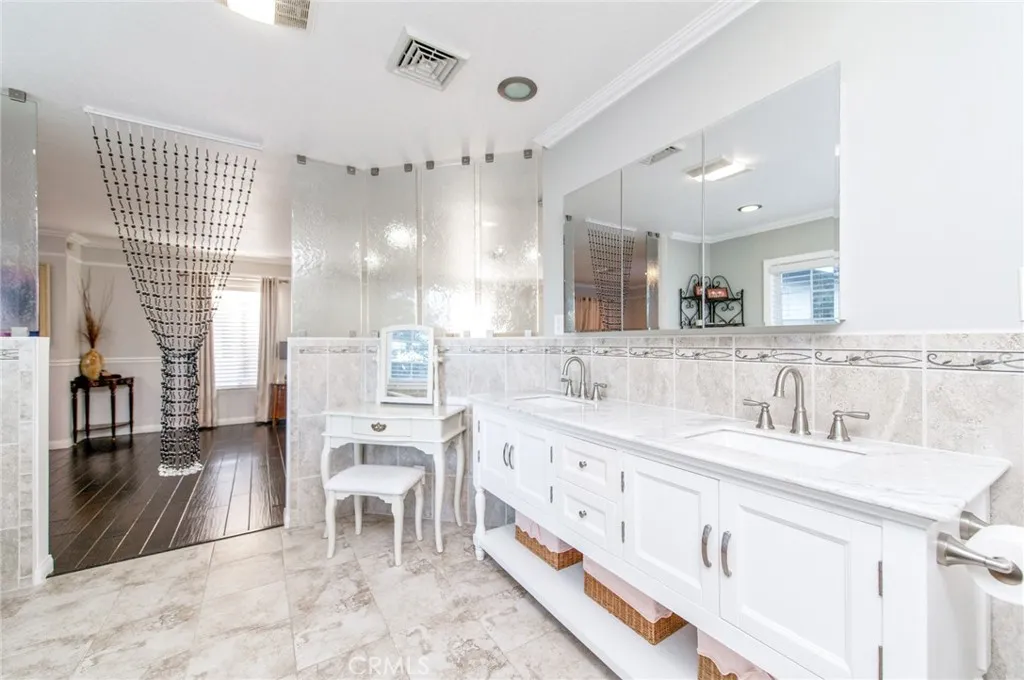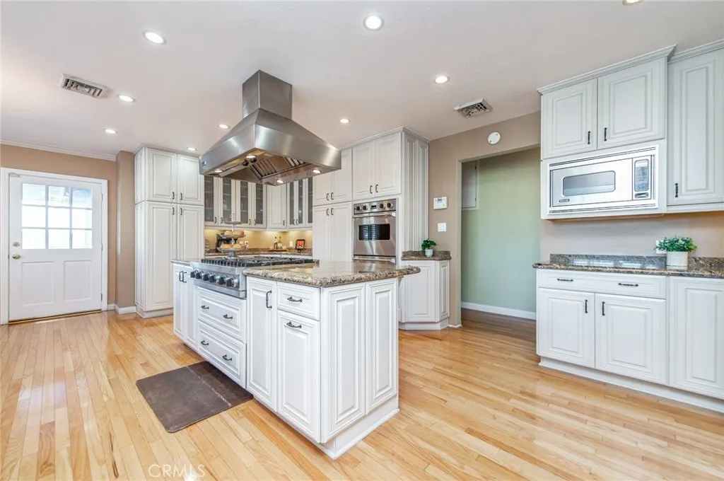 Discover the pinnacle of tranquil California living at this remarkable Friendly Hills estate, where classic elegance meets modern comfort. Nestled on a quiet corner lot, this property is a private sanctuary offering a legacy of quality and peace of mind in one of Whittier's most sought-after neighborhoods. Step inside to an interior of thoughtful design and luxury. Gleaming hardwood floors flow through formal and informal living and dining areas, perfect for both grand entertaining and casual relaxation. Find a quiet moment in the sophisticated library with its inviting fireplace. The gourmet kitchen is a culinary masterpiece, featuring premium Viking appliances, expansive granite countertops, a large center island, and double ovens. Grand windows and glass doors bathe the home in an abundance of natural light. The home's accommodations are highlighted by an expansive dual room master suite featuring its own private deck. This luxurious space consists of the main master bedroom, which includes its own retreat and a large walk-in closet, and a magnificent custom bathroom that serves as a personal spa, complete with a classic clawfoot tub, a separate shower, and elegant stone floors. The lower level adds to the home's versatility, featuring a desirable private guest suite with its own separate entry and kitchenette, as well as a large entertainment room perfect for gatherings and recreation. The exterior is an absolute oasis, your own private paradise. The meticulously manicured grounds create a tranquil, park-like setting offering serene privacy. The backyard is an entertain