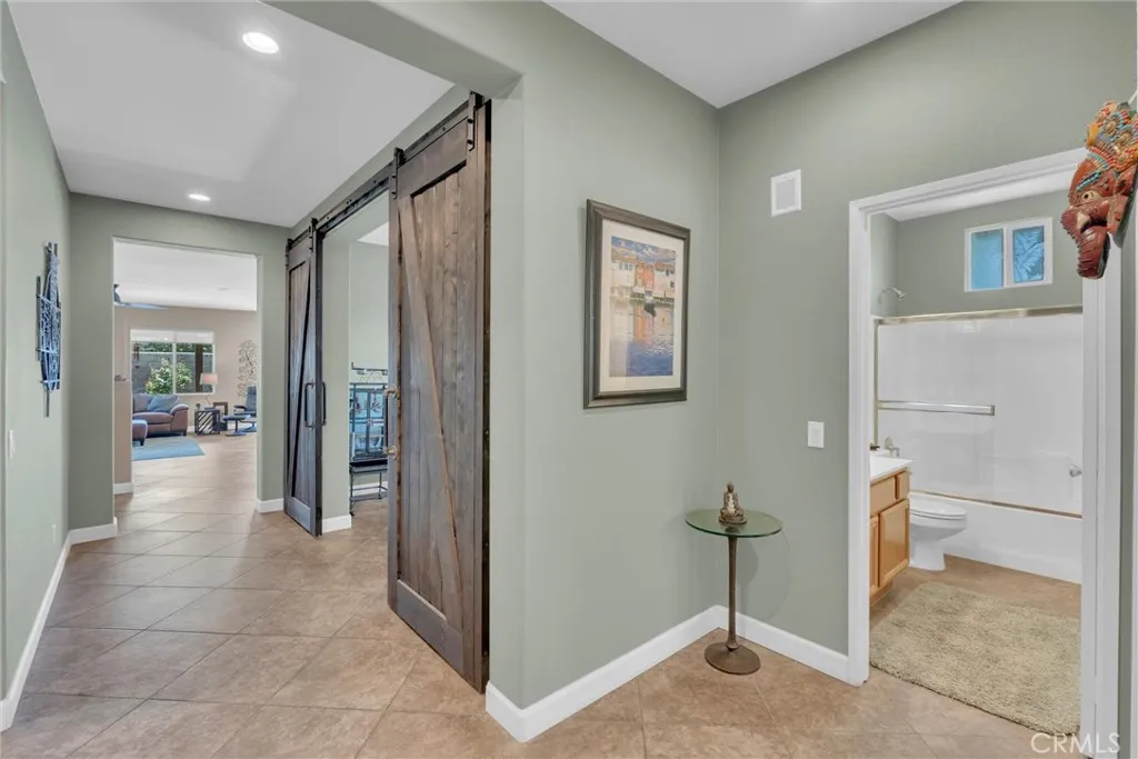 Popular single-story home on a Corner Lot with Open Floorplan. No rear neighbors! 3 Spacious bedrooms & 2 bathrooms. This home is in pristine condition and shows true pride of ownership. Enter through a lengthy hallway with high ceilings that opens up to the Open Great Room. The beautiful gourmet kitchen features generous cabinets, a large island ,stainless steel appliances, and granite countertops. New 2025 Stove, Garbage disposal and Water Heater! Spacious open Great Room with surround sound system & cozy fireplace with raised hearth is the perfect place to entertain. Primary suite is on one side of the home, separating you from the other 2 bedrooms. Primary bathroom with a Separate walk in shower and soaking tub, generous walk-in closet and dual sinks & vanity! There is also a huge walk in closet! Secondary bedrooms are large , one featuring a Barn Door entrance! Additional features include an Indoor Laundry room with storage cabinets, Plantation Shutters, Ceiling Fans and beautiful oversized 20" tile flooring throughout the living spaces. Laminate flooring in bedrooms. Outside, the backyard features a fully landscaped, low maintenance yard with no rear neighbors! Pick your own fruit from the lemon & lime trees! Large covered alumawood patio cover, with custom hardscape, and show stopper built in fire pit with fire glass. Block wall fencing, with vinyl fencing on one side. Extra large 2 1/2 car garage! Located in the award-winning Temecula school district, in the Dutch Village neighborhood near sports parks, playgrounds, walking trails and shopping, this home has it all!