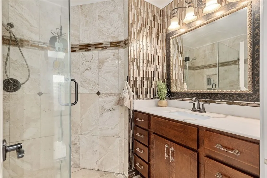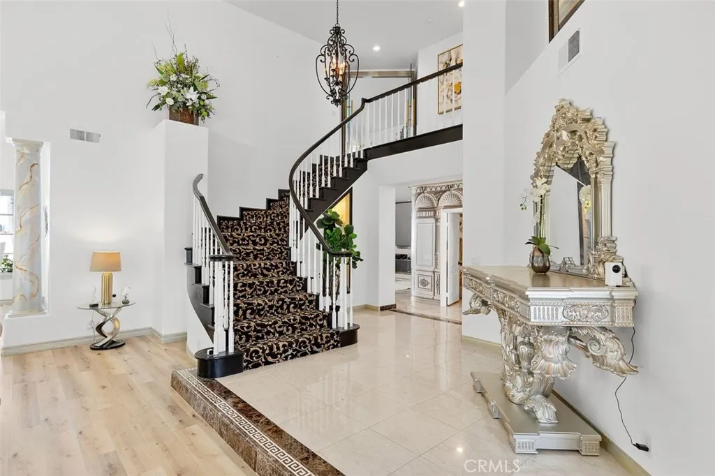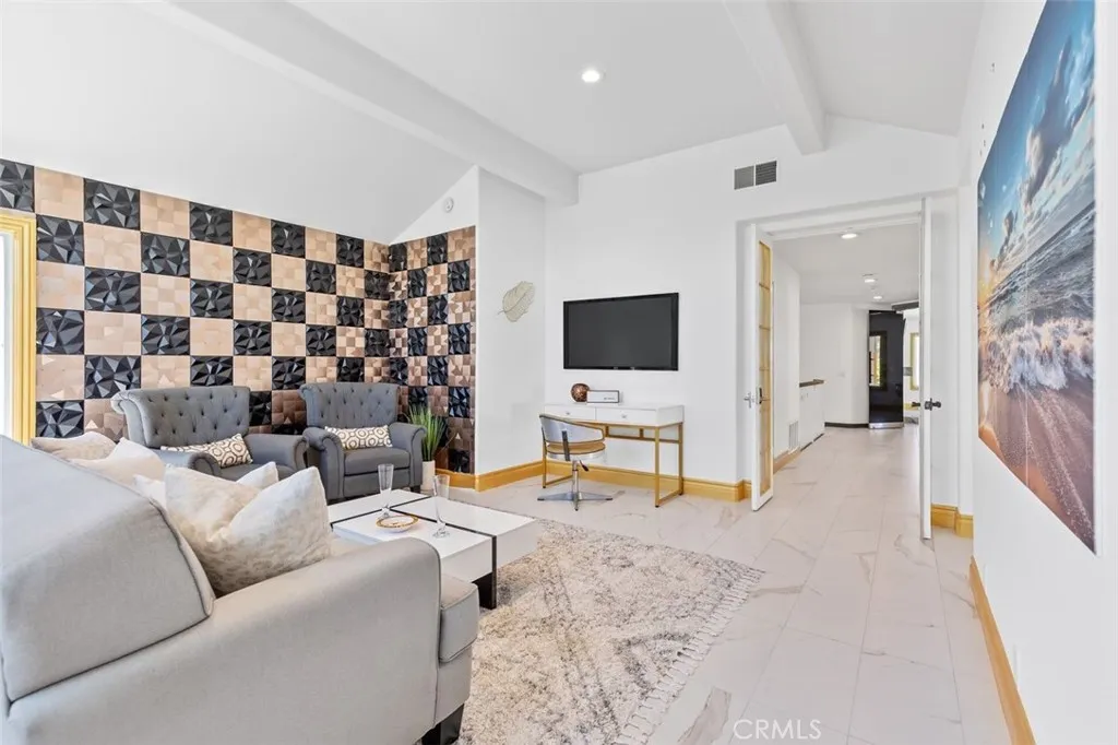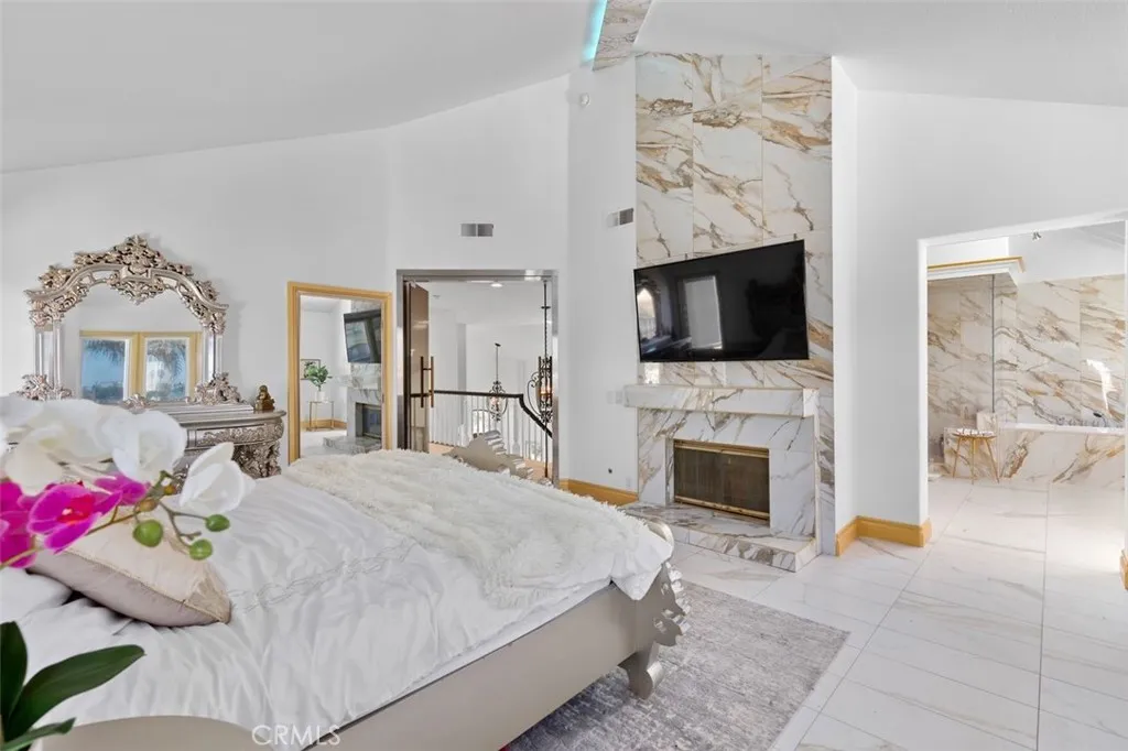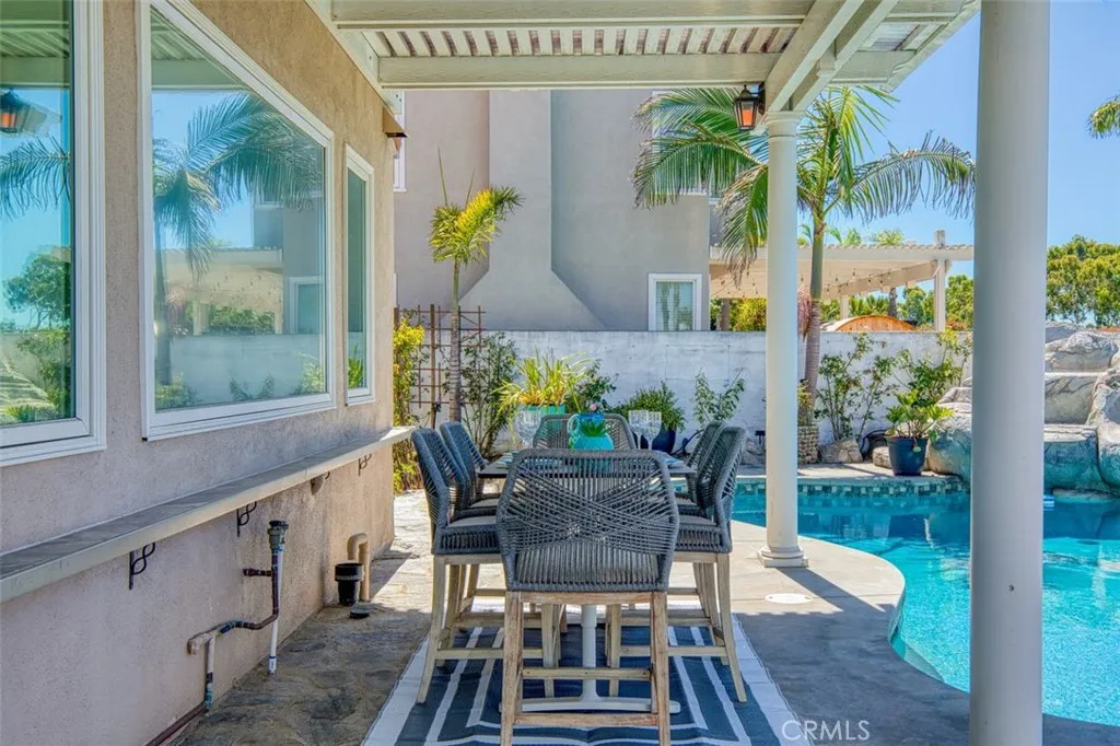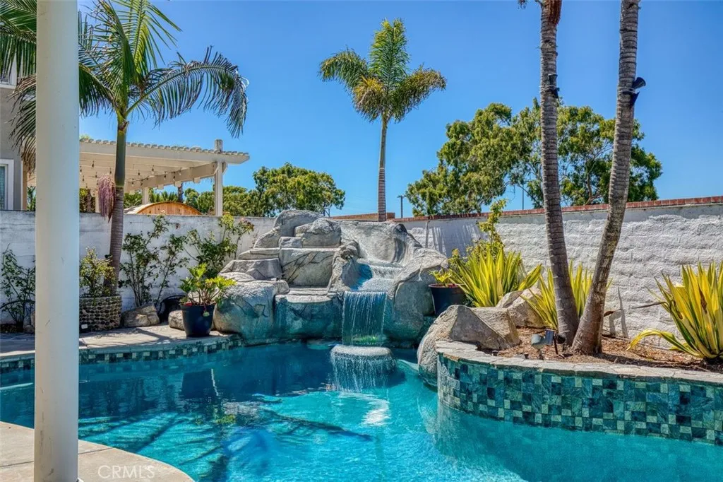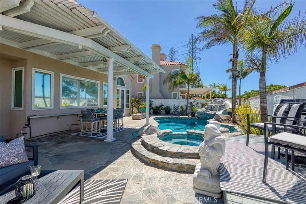 Welcome to Huntington Place Estate, an exceptional home in the highly sought-after gated community of Huntington Beach. An opportunity to live in a nestled tranquil cul-de-sac offers the ultimate blend of luxury and convenience, and just half a mile from PCH. The home features exquisite stone counter-tops with custom RGB lighting, creating a sophisticated ambiance perfect for both everyday living and entertaining. The open-concept design is ideal for hosting guests or enjoying the tranquility with loved ones. The double doors off the family room lead you to your backyard oasis equipped with stunning custom rock pool & spa w/ waterfall & slide, built-in BBQ, & fireplace. As you head to the second story you will find a large loft area with vaulted ceilings, two guest bedrooms that share a jack-and-jill-style bathroom, & the master bedroom. The luxurious master bedroom offers large windows with channel views, vaulted ceilings, & fireplace. Relax in your master bathroom with large soaking tub, walk-in shower, & walk-in closet. Fully paid solar panels, you can live sustainably while enjoying the comfort and elegance this home has to offer.