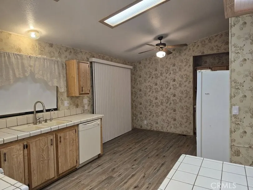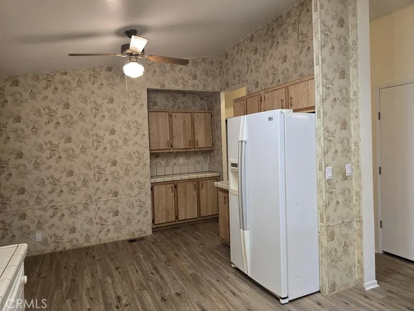 One of Yucaipa"s most desirable 55+ community. Beautiful triple wide. View of the mountains through the large windows in the living room. Open floor plan to dining area and kitchen. separate office area in living room with built in desk. Newer laminate flooring and carpeted flooring and newer carpet in bedrooms. Cathedral ceiling. Dining area with built in lighted hutch. Kitchen has separate dining area and lots of counter space plus lots of storage. Dual sinks, filtration system. Tile counter tops. Gas range, side by side refrigerator. Slider in Kitchen area to the 3rd bedroom. Could also be used as an office/craft or what you want it to be. Has a closet and electric heater. Has it's own entrance to outside. Larger bedrooms, mirrored closet door in Master bedroom. walk in closet with two entrances, Shower over tub. Bidet, toilet. marble counter, dual sinks. Guest bedroom has large walk in closet. Ceiling fans. Dual pane windows, Individual extra large laundry room, with more storage and vanity. Deep sink. chaulk board and pin bulletin board. Entrance to driveway. Wait, There's more, 2 sheds for extra storage too. Amenities in the park include Water, sewer and trash. Spa, swimming pool. and dog park. Appliances included except for no washer. TV in living room also included. Home has both swamp-evaporative cooler and central heat and air. Sprinkler drip system. 3 parking spaces Security gate for entrance to Yucaipa Land Yacht Harbor. This is a member park, where you own an RV for at least a year. HOA is $195 for members, $650 for non. RV parking available. Must have park app