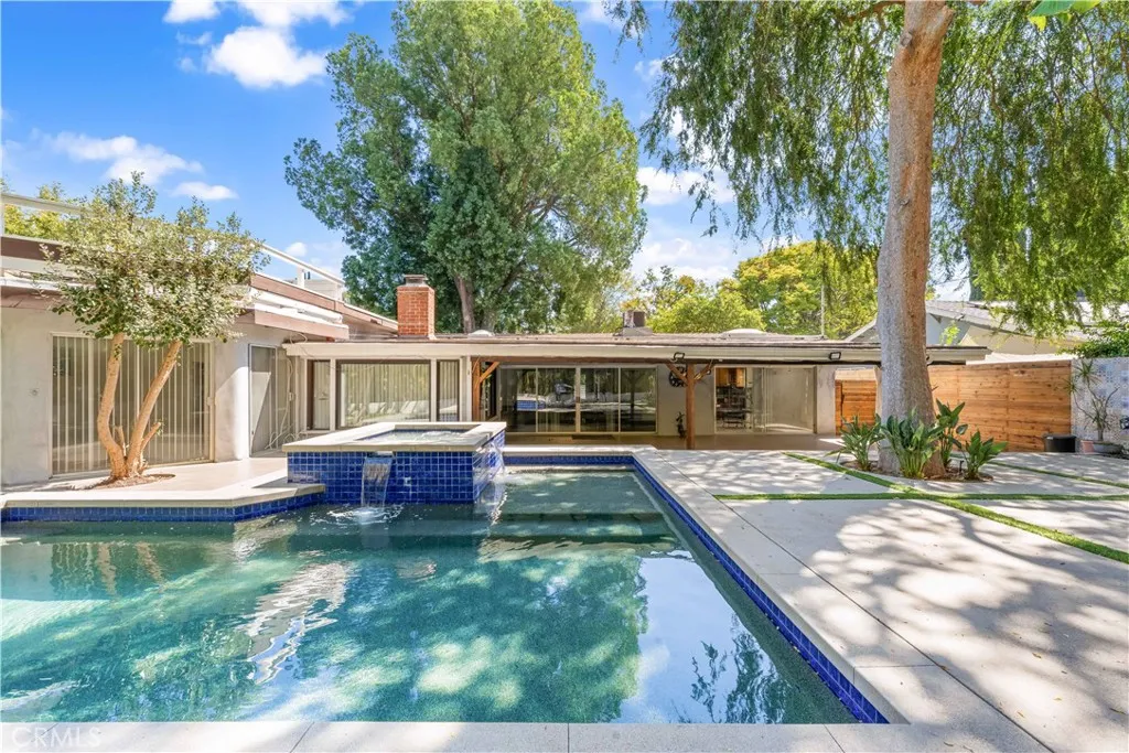 Welcome to 23151 Bigler Street, a beautifully updated single story retreat nestled in the heart of Woodland Hills, south of the Boulevard. This inviting home offers timeless charm and modern comfort across nearly 2,300 square feet of living space, all set on a private, gated 8,441 square foot lot. Inside, youll find three spacious bedrooms and two bathrooms, complemented by new laminate flooring, fresh interior paint, and a bright, airy living room with vaulted ceilings, skylights, and a cozy fireplace. The kitchen seamlessly flows into a comfortable family room, making it perfect for entertaining or relaxing with loved ones. A versatile bonus room with Spanish tile flooring and walls of windows offers the ideal space for a home office, art studio, or playroom. One of the bedrooms features a Jack & Jill layout that connects to both an office and a nursery, catering to todays flexible lifestyle needs. Step outside into a tranquil backyard oasis, where a large sun deck, sparkling pool and spa, and lush greenery provide the perfect escape. A rooftop deck overlooks the grounds, offering an elevated space for outdoor enjoyment. The garage has been converted into a studio, presenting an excellent opportunity for extra income or guest accommodations. With some light touch-ups and personal finishes, this home has the potential to truly shine and become one of the best in the neighborhood. Located just minutes from Ventura Boulevard, the 101 Freeway, and premier local shopping and dining, this home also falls within the highly regarded Calabash Elementary, Hale Charter Middle, and E