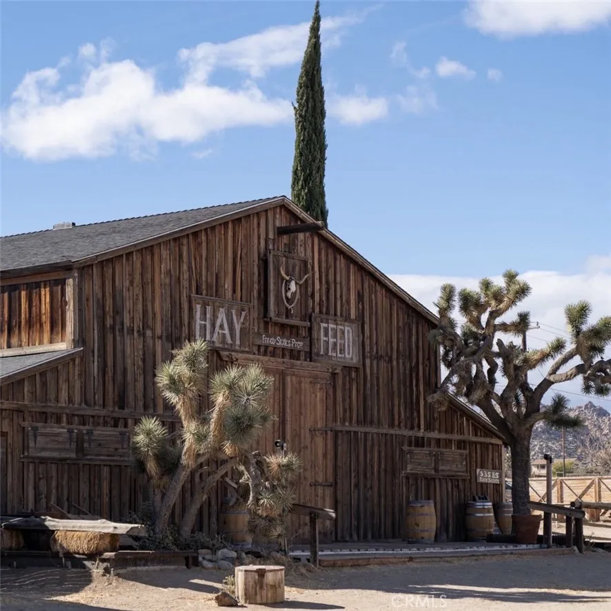 2.5 Acres in Historic Pioneertown Minutes from Mane Street Discover a rare 2.5-acre parcel in iconic Pioneertown, just a five-minutes from historic Mane Street and world-famous Pappy & Harriets. This special property offers a blend of build-ready infrastructure, cultural history, and desert beauty, making it the ideal setting for your modern ranch, architectural high desert retreat, or creative sanctuary.Set at 4,200 snow-level elevation, the lot is privately accessed by a dead-end road with no through traffic. Land is graded with a gentle downslope to Chapparrosa Wash. A private water well site plus 7,500-gallon storage tank is already in place, giving your build a head start. Utilities are nearby, including fiber internet, power, and abundant solar potential.The property features stonework hardscaping, native plants, and ancient California scrub oaks, alongside yuccas, cacti, pomegranate trees, and wildflowering shrubs that bring seasonal color. A ceremonial kiva fire circle designed for gatherings, drum circles, and celestial alignment sits alongside a sunken medicine wheel fire pit surrounded by an olive grove, creating spaces for connection and reflection. There are 12 semi-subterranean stone sleeping circles (20 diameter each), offering a truly unique landscape feature.Practical features include surveyors corner markers, wire mesh fencing, and a floodwater berm on the upslope for natural land protection. The parcel is bordered by panoramic protected BLM Conservational Land, with views of the Sawtooth Mountains, Black Hill, Black Mountain, San Gorgonio Wilderness, B