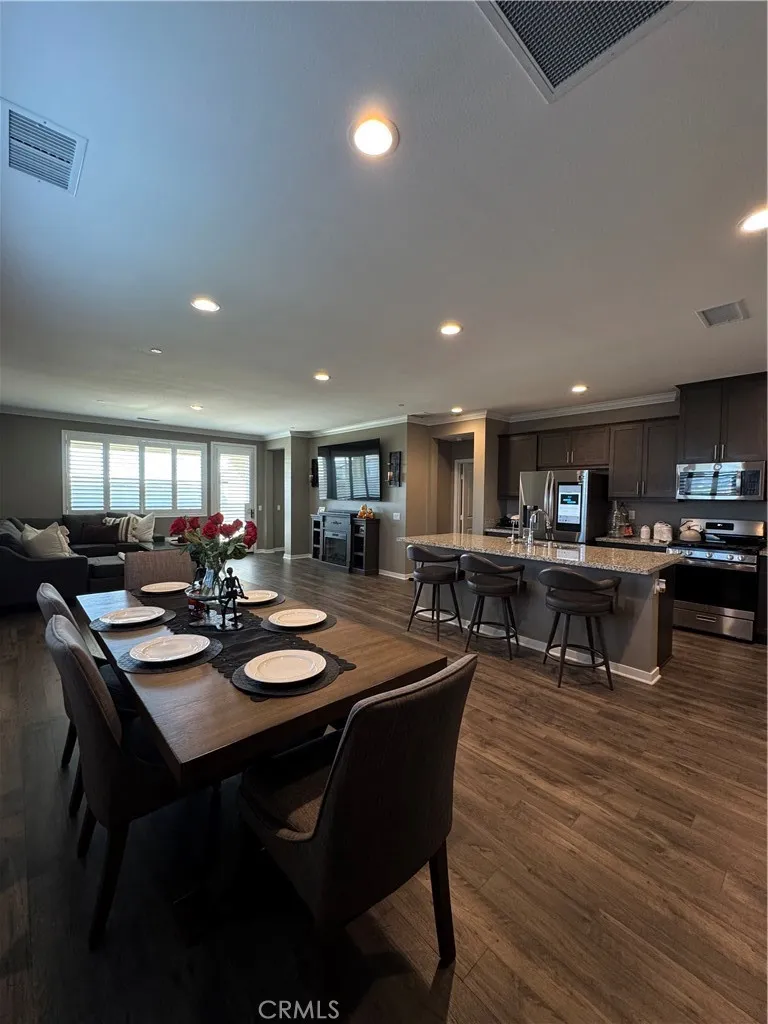 *****PAID SOLAR SYSTEM**** Welcome to this spectacular single-story family home inside the highly sought-after Olivewood gated community. From the moment you step inside, you are greeted by an open floor plan with soaring ceilings, elegant crown molding, and shutters throughout the entire home. This residence offers three spacious bedrooms and two and a half bathrooms, designed for both comfort and style. The home is thoughtfully equipped with premium features including a paid-off solar system, a whole-home water softening system, a tankless water heater, and rain gutters. The extended driveway provides ample parking space, while the desirable backyard offers a partially landscaped setting with plenty of potential to create your dream outdoor retreat. Sitting on a premium corner lot at the end of a cul-de-sac, this home offers both privacy and curb appeal. Conveniently located between the 10 and 60 freeways, commuting is effortless. The Olivewood community elevates the lifestyle with two resort-style pools, a beautifully designed clubhouse, fire pits, parks, scenic walking trails, and sports courts for both basketball and volleyball. This home blends luxury, functionality, and location into one exceptional opportunity. Dont miss the chance to make this your future home. Schedule your private tour today!