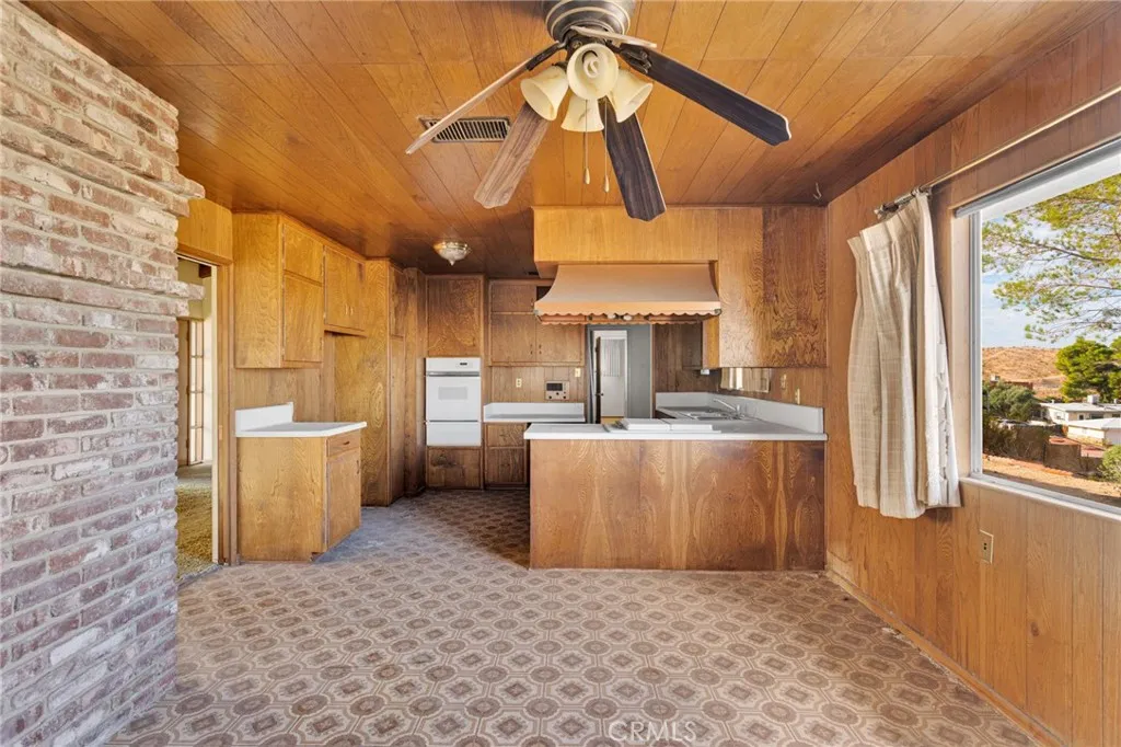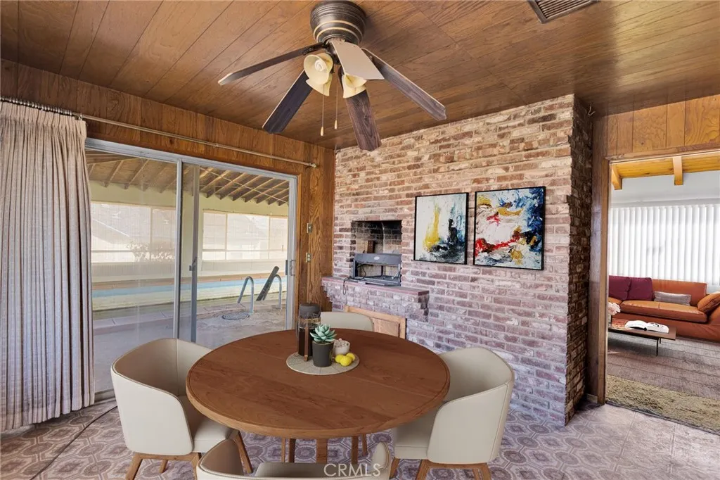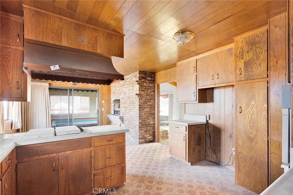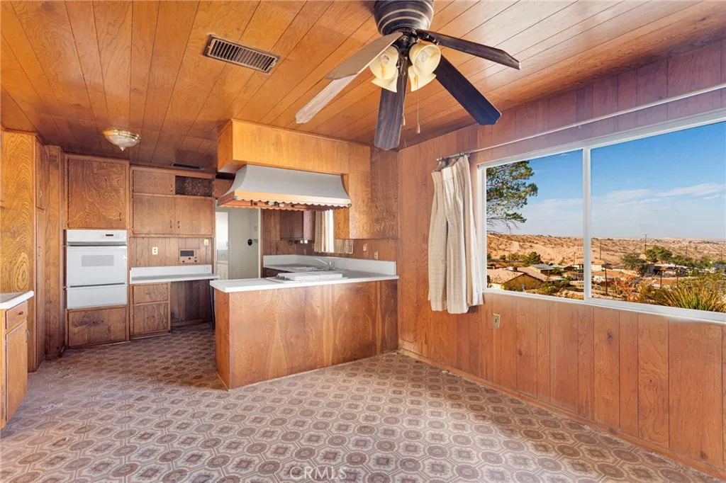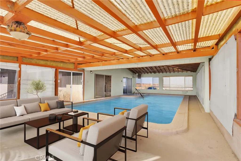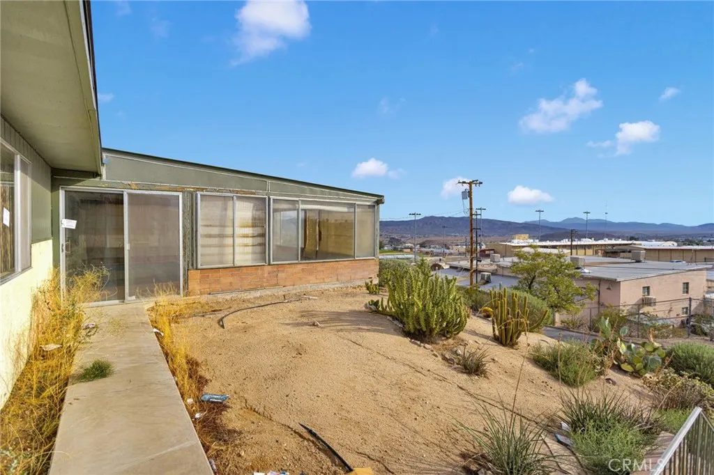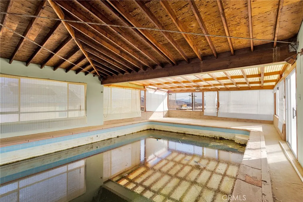 Calling all visionaries! This 3-bedroom, 2.5-bath home sits on a generous lot and offers endless potential for the right buyer. With vintage charm throughout, the home features wood-beamed ceilings, a stone fireplace, and mid-century touches waiting to be brought back to life. The kitchen showcases retro finishes, wood cabinetry, and large windows that flood the space with natural light and sweeping desert views. A spacious enclosed patio/sunroom with a pool adds valuable square footage and flexibilityperfect for future entertaining, hobbies, or a lounge area. Downstairs, the attached two-car garage includes not only additional storage space, but also a convenient powder room. Set on a sloped lot landscaped with desert-friendly vegetation and a wide driveway, the property provides ample room for parking, gardening, or expansion. This is a great opportunity to restore a classic Barstow home with vintage character, and standout amenities. Sold as-is. Buyer to conduct their own due diligence.