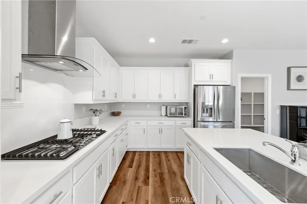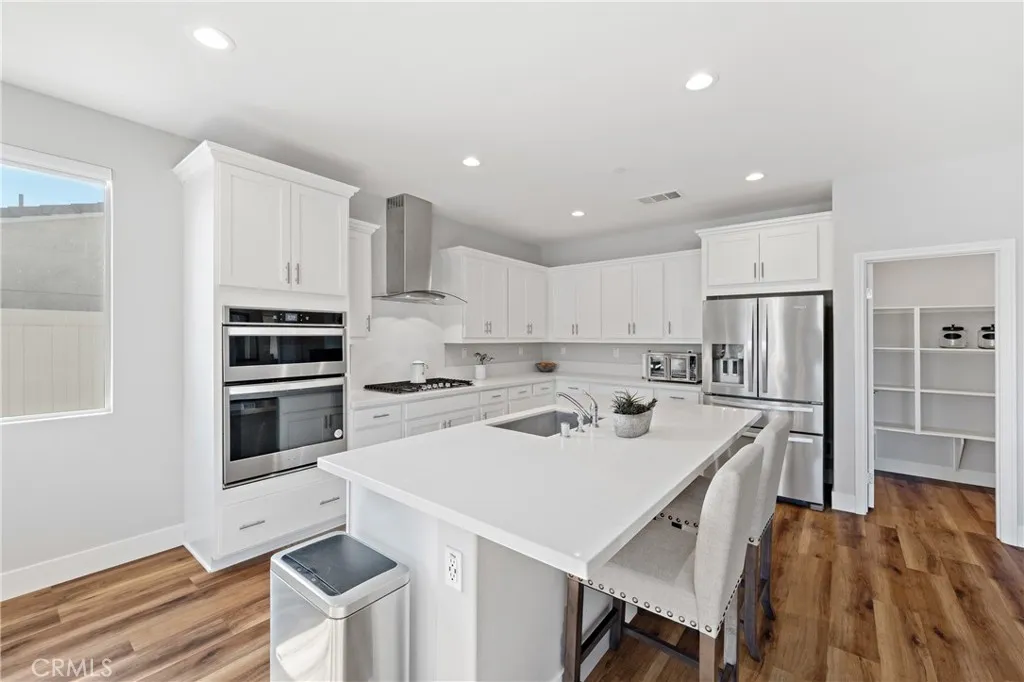 Welcome to this stunning single-story Next Gen suite home in the beautiful community of Winchester! Built in 2021, this highly upgraded residence offers 4 bedrooms, 4 bathrooms, a dedicated den/home office and 2,641 sq. ft. of living space on a spacious 8,712 sq. ft. lot. The thoughtfully designed floor plan includes a private Next Gen suite/casita with a separate entrance, featuring its own living area, kitchenette and private bathroom- ideal for multi-generational living, guests, extended stays, or potential rental income. Inside, youll find a chefs kitchen with quartz countertops, upgraded cabinets with chrome fixtures, stainless steel appliances, and a large island, making it the heart of the home. Bathrooms are finished with elegant marble countertops, while the living areas feature luxury vinyl flooring throughout, a Nest thermostat, pre-wiring for ceiling fans, and blackout window treatments for comfort and efficiency. The garage boasts epoxy flooring and EV charging readiness, while paid solar provides energy savings. Step outside to a finished, low-maintenance backyard with high yielding fruit and multiple plantar boxes all equipped with drip-irrigation, a fully equipped BBQ island featuring a stainless steel BBQ, under-counter refrigerator, TV housing area, embedded Bluetooth speakers, customized lighting, electrical outlets, and connected gas and water lines. The yard also includes permitted gas, water, and 220v electrical lines, gated side yard parking suitable for RV's, trailers, or boats up to 10x60 ft as well as a low-maintenance front yard with drip irrigati