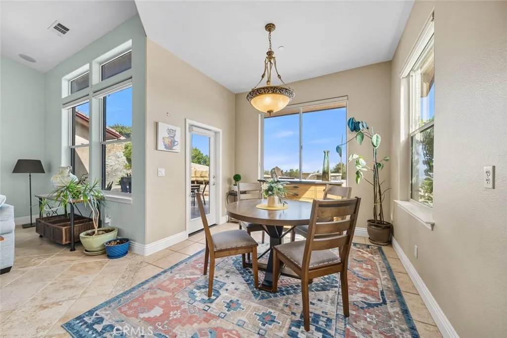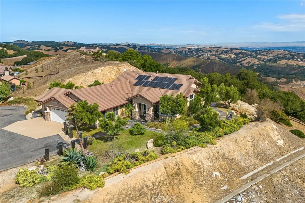 Set high above the Central Coast in the prestigious Oak Ridge Estates, this spectacular executive estate sits on one of the communitys highest lots, offering some of the most commanding views in Atascadero. From sunrise to sunset, enjoy unobstructed 360-degree vistas of the Santa Lucia Ridge, rolling valleys, and even distant glimpses of the Pacific Ocean. With its elevated setting, expansive layout, and resort-style amenities, this home was designed to deliver both luxury and livability. Inside, soaring vaulted ceilings, oversized rooms, and an open yet versatile floor plan create a sense of scale and sophistication. Travertine and hardwood floors flow throughout multiple gathering spaces, including a dramatic sunlit great room, a cozy family room with fireplace, a formal dining room, and a charming breakfast nook. At the heart of the home, the gourmet kitchen invites both entertaining and everyday living, with a large island and breakfast bar, abundant cabinetry, expansive counter space, and even a built-in desk for added convenience. The primary suite is its own private sanctuary, complete with a fireplace, custom built-ins, dual walk-in closets, and a spacious sitting area perfect for unwinding. The spa-inspired bath, with its generous proportions, completes the retreat-like experience. Smart home features add peace of mind and efficiency, including Nest temperature control, a whole-house fire suppression system, an EV charging station, and an owned solar array with battery backup. Equally impressive, the outdoor spaces are crafted for entertaining and relaxation. Expan