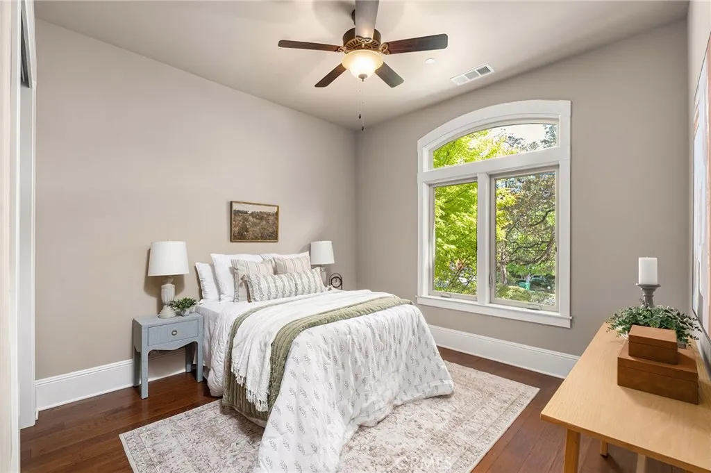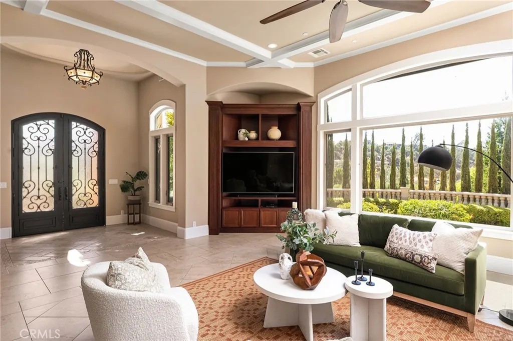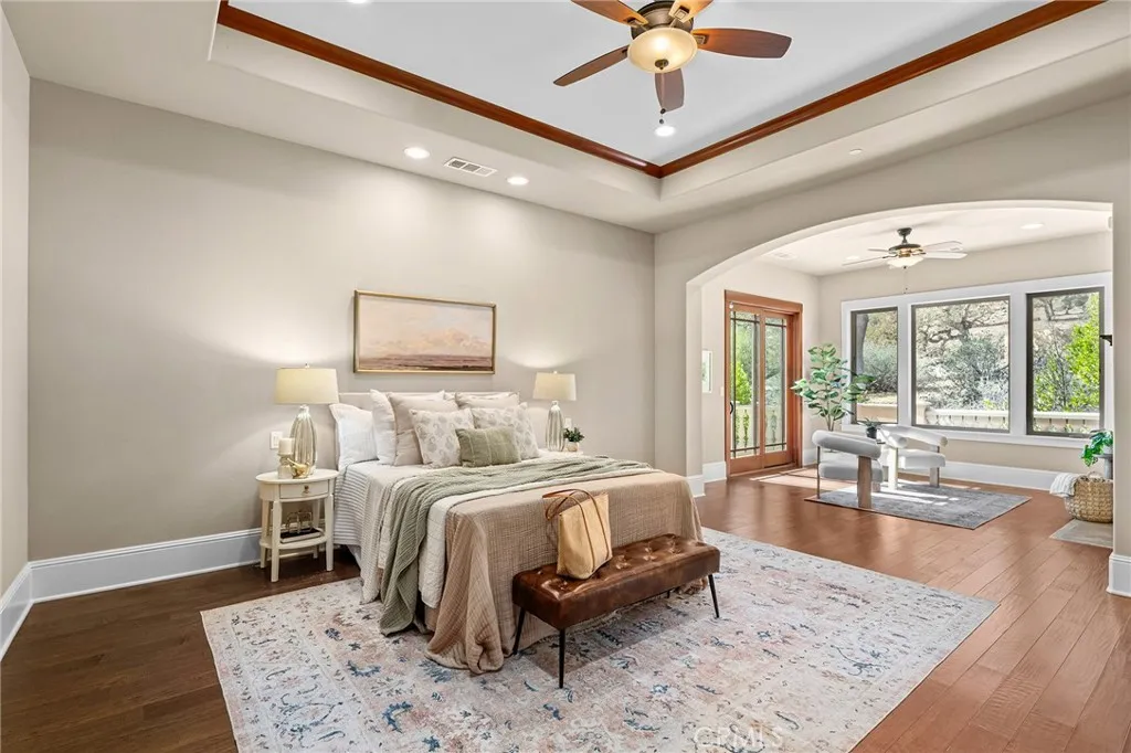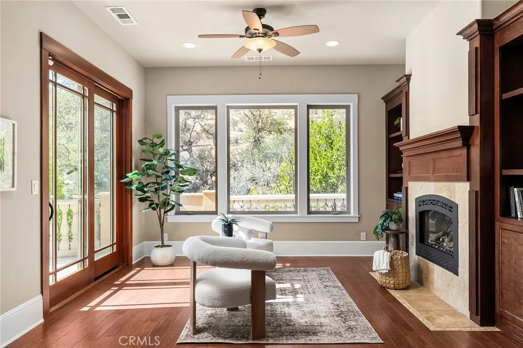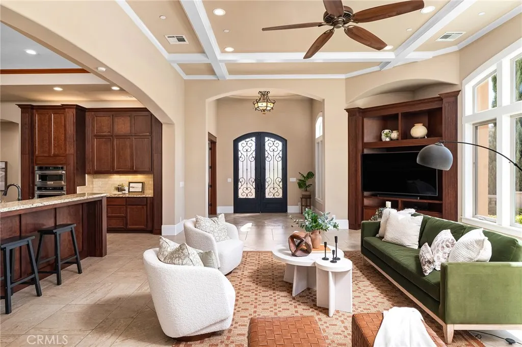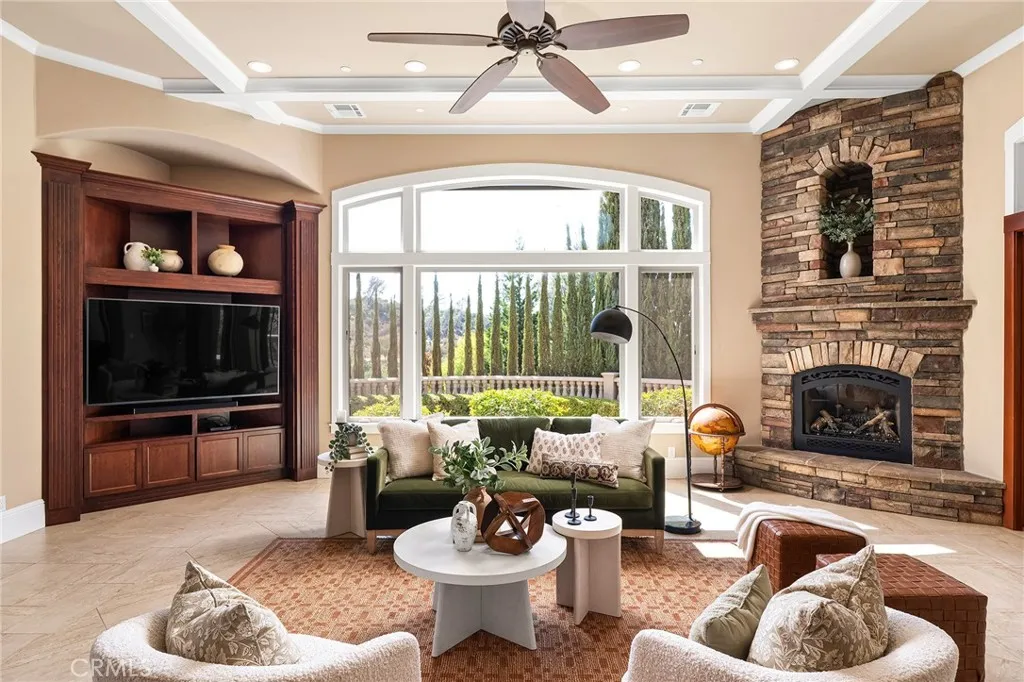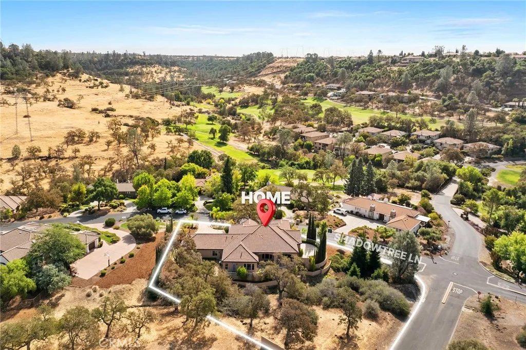 Welcome to Canyon Oaks, one of Chicos most exclusive gated communities. This remarkable residence sits on a full acre with a seasonal creek and mature trees, offering peaceful surroundings and panoramic views that stretch for miles. Inside, the grand entry sets the stage with soaring ceilings and dramatic double doors. The open layout highlights a spacious living area anchored by a custom fireplace and expansive windows framing the natural scenery. The kitchen is a showstopper, featuring rich cherry cabinetry, granite countertops, a copper farmhouse sink, large island, and premium appliancesan ideal space for both everyday cooking and hosting gatherings. Designed for indoor-outdoor living, the home opens to an impressive 1,500-square-foot travertine patio where you can entertain, dine, or simply take in the views. The primary suite feels like a retreat, complete with a cozy sitting area and fireplace, direct access to the patio, a luxurious bathroom with a jetted soaking tub, dual-head shower, double vanity, and abundant closet space. Additional bedrooms include a secondary suite with its own bath, plus two guest rooms. A private office with French doors (and its own closet) could easily serve as a fifth bedroom if needed. Practical features enhance the lifestyle here as well, including a 4-car garage with room for a golf cart, custom finishes throughout, and beautifully landscaped grounds that blend seamlessly with the natural surroundings. This is more than a houseits a rare opportunity to experience refined living in one of Chicos most sought-after communities.