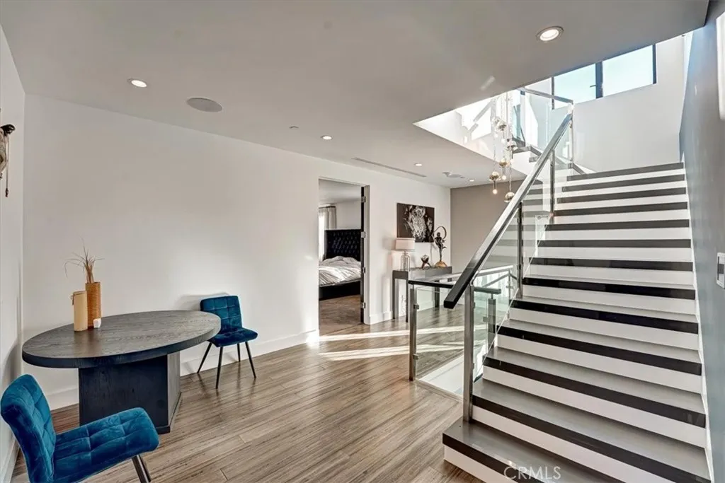 Essentially new constructionthis detached two-story single-family residence was torn down to one wall and completely rebuilt in 2020 with high-quality materials and features throughout. Offering 4,293 sq. ft. of luxury living plus expansive patios, the home is designed for entertaining. The private yard showcases a pool, spa, fire pit, BBQ, outdoor bath, and lounge areas. Inside, a chefs kitchen with oversized quartz island and custom cabinetry anchors the open layout. The Smart Home system allows you to control the pool, spa, lights, cameras & HVAC directly from your phone. Main level offers 1 BR + 3 baths; upstairs features 4 spacious BRs & 3 baths, including a luxe master suite with walk-in, jacuzzi tub & oversized shower. Additional highlights: built-in ceiling speakers, 2 laundry rooms, fire-safety sprinkler system & 2-car garage. Rooftop deck captures 360 views from DTLA to the Hollywood Sign. Appraisal on file at higher value!