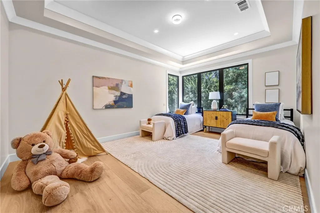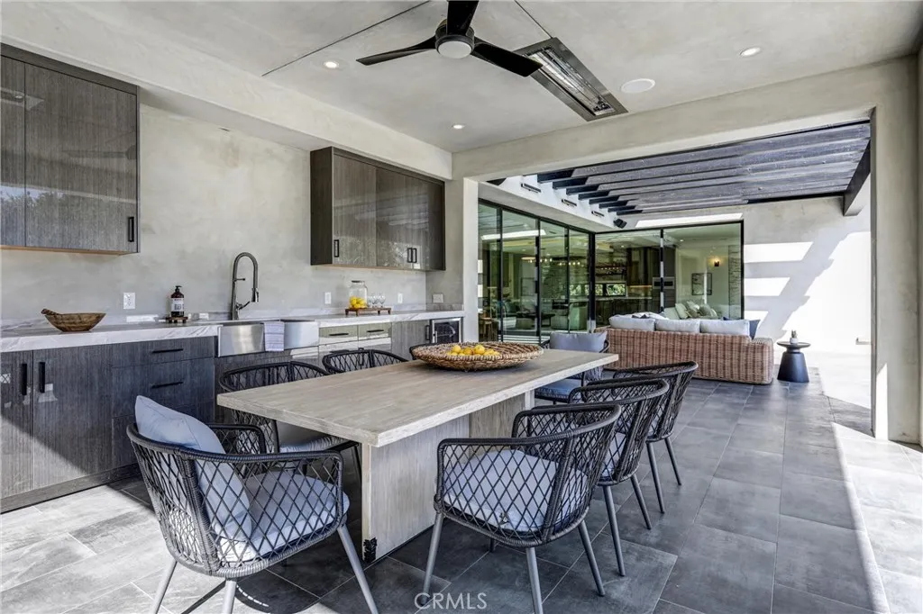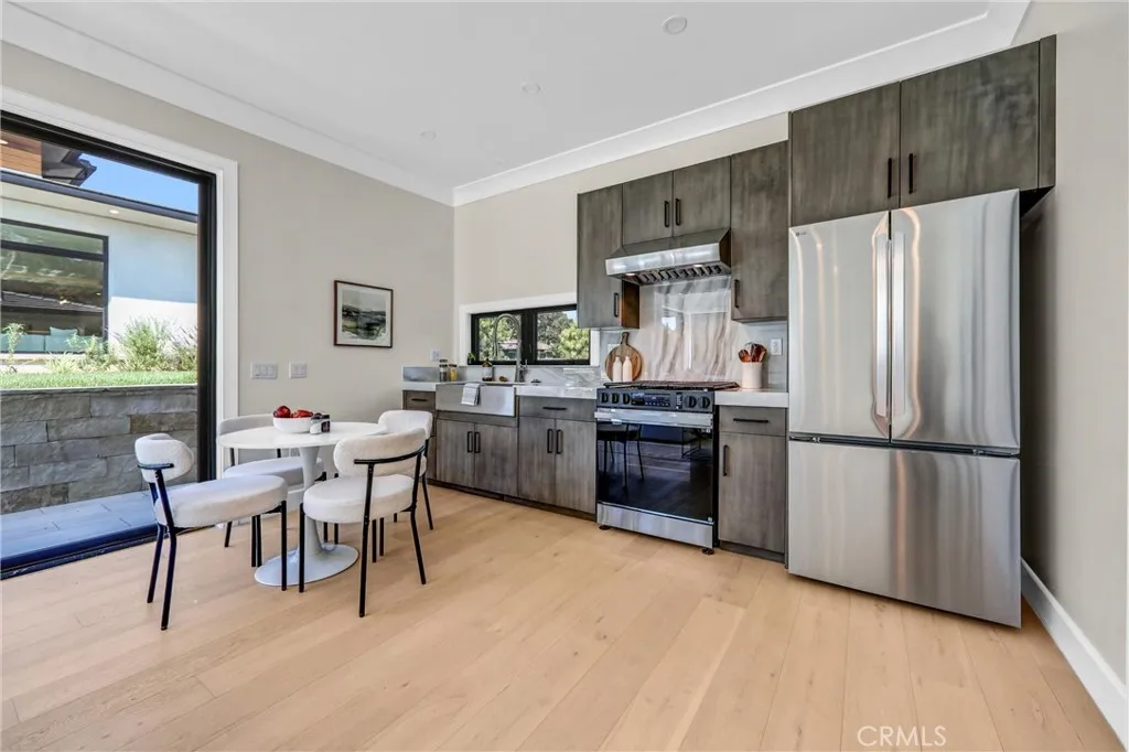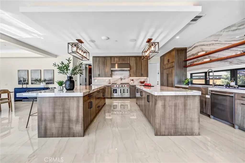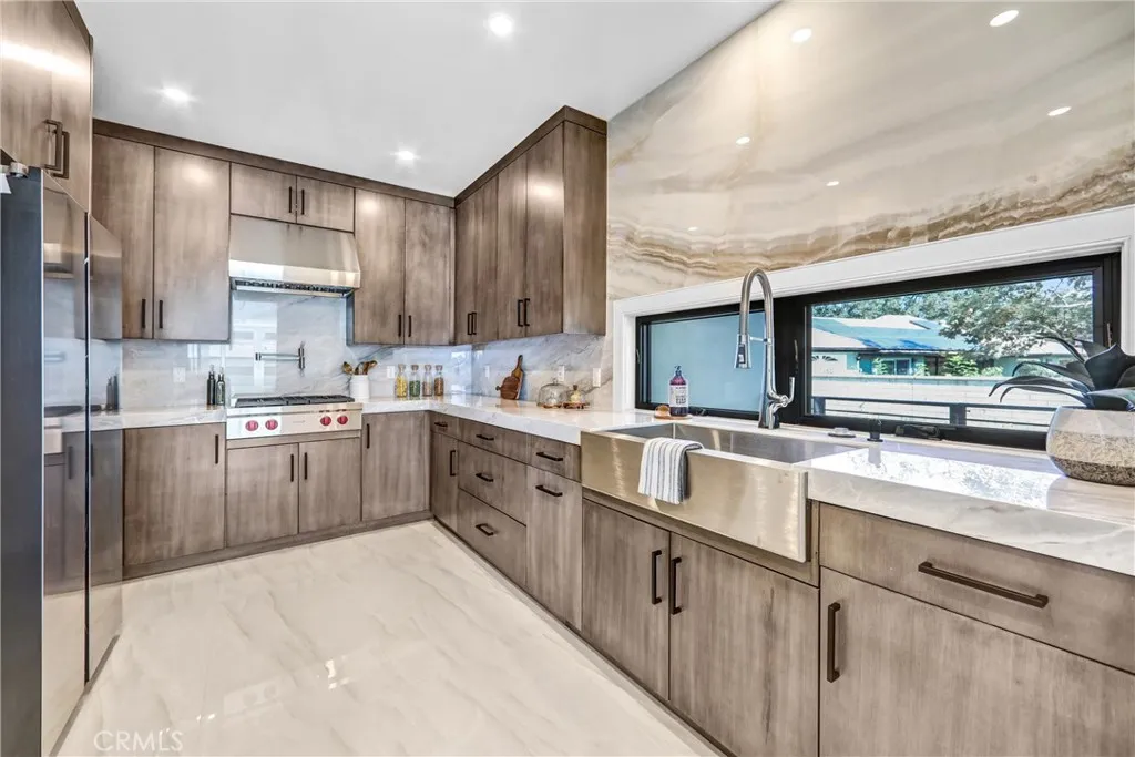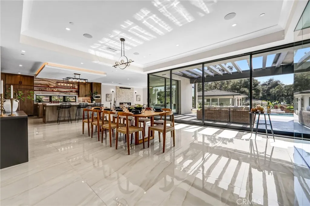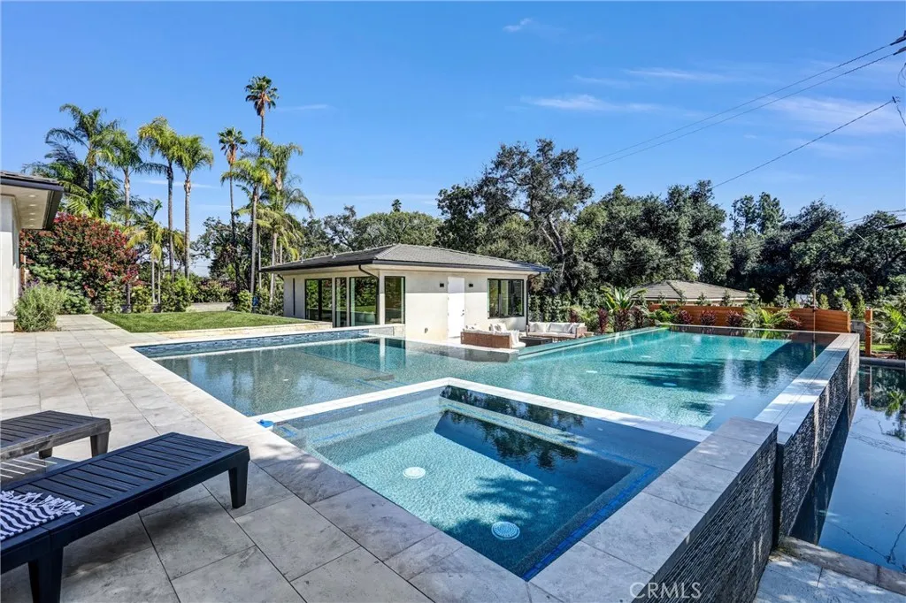 Half an acre of perfection! This completely reimagined property includes a NEW CONSTRUCTION contemporary masterpiece, drought-friendly landscaping, PAID OFF solar roof panels (nearly NET ZERO!), a backyard oasis and a bonus ADU/pool house. No expense spared! Step inside through the stunning pivot front door and youll find wide-plank hardwood floors, dramatic double staircases and soaring ceilings. Every room here includes beautiful tilework, gorgeous fixtures and custom millwork. The main level has an open layout thats filled with natural light. The chefs kitchen anchors the rear of the floorplan, complete with sleek European cabinetry, top-of-the-line Wolf & Sub-Zero appliances, two porcelain-topped islands and a scullery. The kitchen is open to the living room and dining room, which includes a climate-controlled wine cellar. When the weathers right, you can open the massive glass pocket doors to truly maximize indoor/outdoor living. In that backyard oasis, you can entertain under the pergola, dine in the lanai under the built-in infrared heaters, or gather around the poolside firepit. The infinity-edge spa & pool has to be seen in person! The ADU/poolhouse includes a kitchen, bedroom & bathroom with all the same high-end materials found in the main house. Back in the main house, there are two master suites one upstairs and one downstairs. Both spa-like ensuites are simply stunning, offering porcelain slab walls, his&her vanities, a free-standing soaking tub and a gorgeous frameless glass shower. Each of the guest bedrooms also includes a private ensuite. Still need more