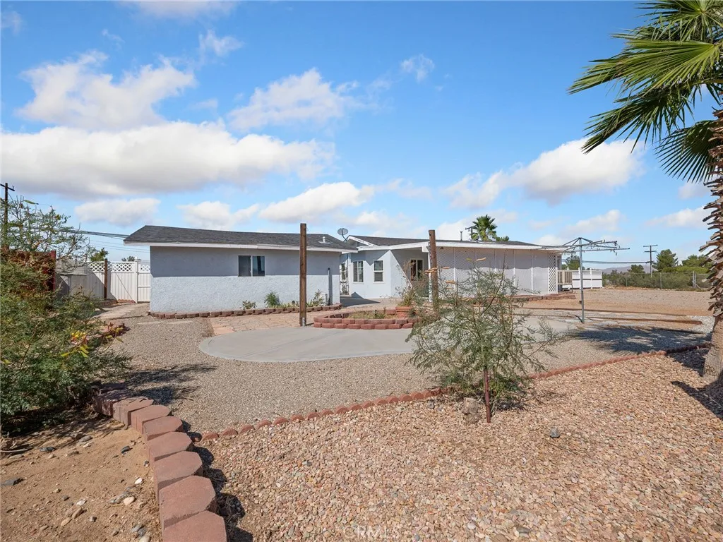 Tucked away in a peaceful Hesperia neighborhood, 17809 Hercules Street blends spacious living with charm and everyday practicality. This well-kept 3-bedroom, 1-bath residence sits on a generous 1.24-acre fully fenced lot ideal for Horses, RVs, off-road vehicles, gardening, or future expansion. Step into a thoughtfully designed 1,053 sq ft floor plan that feels both welcoming and functional. The living spaces are filled with natural light from updated dual-pane windows, and ceiling fans help maintain year-round comfort. The kitchen stands out with custom wood cabinetry, stainless steel appliances, a 6-burner gas KitchenAid range with hood, and an included refrigerator perfect for everyday cooking or entertaining. The dining area, complete with a bay window, offers a sunny spot to enjoy your meals. Additional features like hallway storage cabinets add to the homes smart use of space. In the detached 2-car garage, youll find indoor laundry hookups, and the washer and dryer are included. New Septic System being installed before closing. Outside, the property continues to impress with a circular driveway, detached carport, multiple sheds, and a covered back patio thats ideal for relaxing or hosting guests. Enjoy scenic mountain views and a quiet atmosphere all while being just minutes from Main Street, I-15 Freeway access, and close to schools, restaurants, and shopping. Whether you're seeking extra space for hobbies, equipment, or future plans, this high-desert gem offers room to live and grow. Dont miss the opportunity to make it yours.