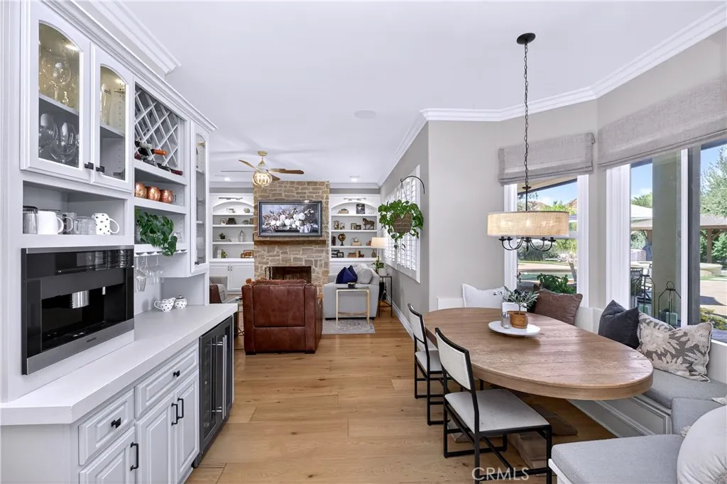 Exceptional custom estate in the Heart of Temecula Wine Country Welcome to Fallen Oak Ranchan extraordinary equestrian estate perfectly situated in Temeculas Wine Country, just minutes from award-winning wineries, restaurants, & shopping. The custom-built main residence blends rustic charm with modern sophistication. The designer chefs kitchen is a showpiece with exposed brick walls, sleek quartz counters, a rich wood-topped island with built-in storage, farmhouse sink, & top-of-the-line stainless appliances including a professional-grade range & oversized refrigerator. Gold hardware, custom cabinetry, & designer lighting create a warm yet refined atmosphereideal for entertaining or everyday living. The formal dining room is timeless & inviting with custom wainscoting, soft wallpaper, exposed beams, & a statement chandelier. Natural light pours through plantation shutters onto warm wood floors & a built-in buffet with open shelvingperfect for elegant dinners or festive gatherings. The family room offers relaxed sophistication with a stone fireplace, custom built-ins, & natural light. Plantation shutters, crown molding, & wood floors complete the picture, creating a space thats both stylish & comfortable. The home includes five spacious bedrooms, five baths, & an office. The luxurious primary suite features a cozy fireplace, wood-paneled ceiling, dual walk-in closets, & a spa-inspired bath with jacuzzi tub & large shower. Additional highlights include surround sound, plantation shutters, dual A/C units, & expansive covered patios for outdoor entertaining. A separate manufact