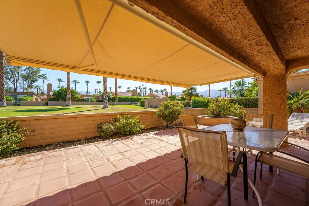 Single-Story 3 Bedroom | 2 Bath | 2-Car Garage | Mountain Views Welcome to Hidden Palms, one of Palm Deserts most desirable gated communities, known for its single-story homes, peaceful flat streets, and scenic walking paths. This beautifully maintained 3-bedroom, 2-bath home offers light-filled living with vaulted ceilings, an open floor plan, and effortless indoor-outdoor flow. Three sets of sliding glass doors provide easy access to both the private backyard and a charming atrium, which connects to the office/third bedroom a perfect space for relaxation or working from home. The spacious living room features a wood-burning/gas fireplace and adjoins the formal dining area, ideal for entertaining. The kitchen has all replaced cabinetry, granite countertops and enjoys morning sunlight and includes a cozy breakfast nook for casual dining. Step outside to a roomy backyard designed for comfort and enjoyment, featuring an electric retractable awning and a scalloped awning off the primary bedroom, adding both shade and ambiance. With no home directly behind, this property backs to a lush greenbelt offering wide open space and gorgeous mountain views the perfect backdrop for sunset evenings. Additional highlights include ceiling fans in all bedrooms, a welcoming entry foyer, and vaulted ceilings in the main living areas. Residents of Hidden Palms enjoy resort-style amenities including: 4 sparkling pool & spa areas 8 pickleball courts 3 tennis courts Beautiful lakes and water features throughout the community All this, just minutes from El Paseo, Palm Deserts premier shopping an