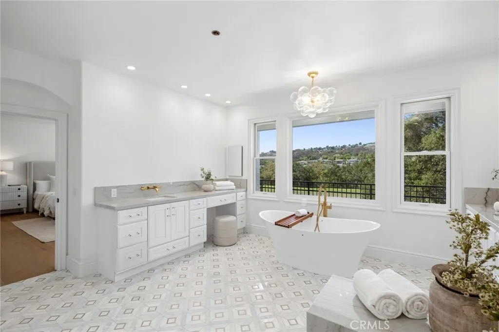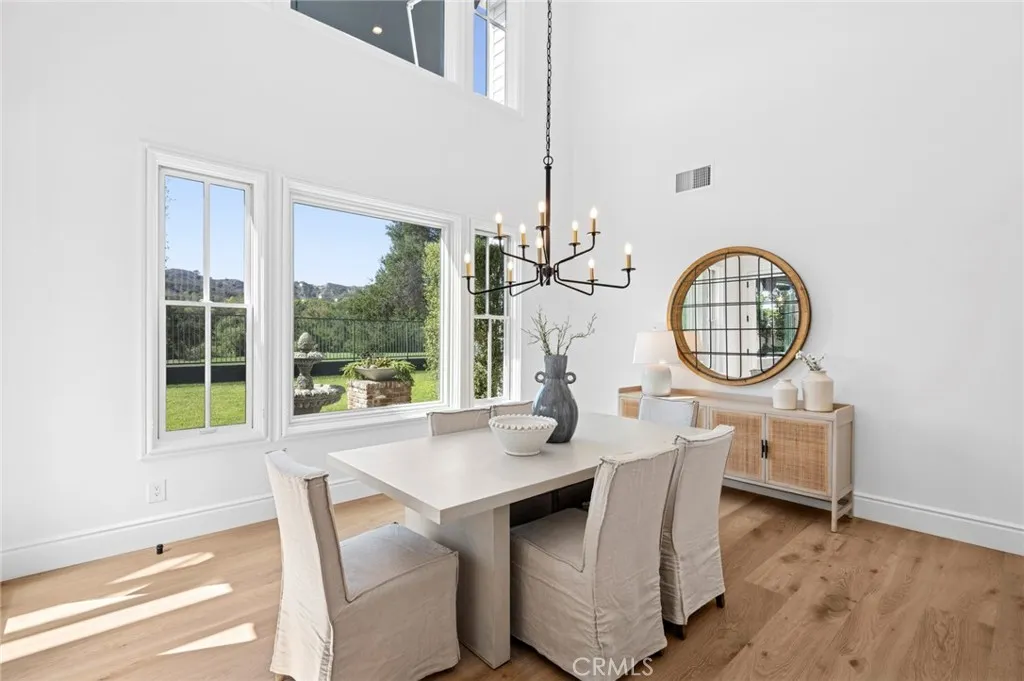SWEEPING VIEWS And LOCATION! Amazing Sunset and Golf Course Views Overlooking the 18th Fairway of the North course at Coto de Caza. One of only 11 homes on a single loaded cul de sac street with a short walk to the Coto de Caza Golf and Racquet Club. The Simi-custom Home was designed and built by Stonefield Development with a tradition of beautiful and unique architectural design and with exceptional quality features throughout like the solid core 8 ft. wood doors, dual staircases, and walk-out view balcony off the primary bedroom. Three gas-burning fireplaces. The exquisite residence delivers the ultimate in luxury with natural elements in its open light and bright 5000+ sq ft. The residence is graced with a two-story volume ceiling in the Entry, Formal Living, and Dining Rooms. Comforts include 5 spacious bedrooms, 4.5 bathrooms, 4-car garage, Library/Office, and large open upstairs lounge area for the family or office plus A Separate area for reading/ study. Many large Picture windows (9 are new and installed by Anderson). The home has many modern upgraded features, including wide plank wood flooring throughout (except the two staircases), which has beautiful wool carpeting. All new Toto toilets, including a bidet washlet, are in the primary bathroom. Completely remodeled master bath with Newport Brass Fixtures, solid slab stone shower, and counter tops, a free-standing tub for that soothing bath while enjoying the stunning views. The open Kitchen has a large walk-in island with a Viking cook top, two new Viking dishwashers, and a spacious nook with a large picture windo
