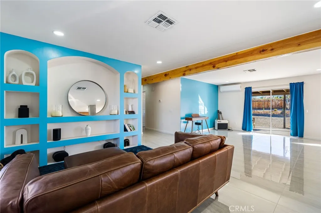 Welcome to this beautifully updated three bedroom, two bathroom home on an extra-large lot with stunning mountain views from the front and backyard. The modern kitchen features quartz countertops and stainless steel appliances. Both bathrooms have been renovated with walk-in showers and tile flooring. Each room has its own mini-split system for efficient heating and cooling. The backyard is perfect for entertaining or relaxing, complete with an above-ground spa and a play pool to cool off on warm days. Conveniently located near the military base with a school just down the street. Enjoy easy access to Joshua Tree National Park, scenic hiking trails, local restaurants, and the nearby casino. This move-in ready home combines modern upgrades with a prime location and beautiful desert views.