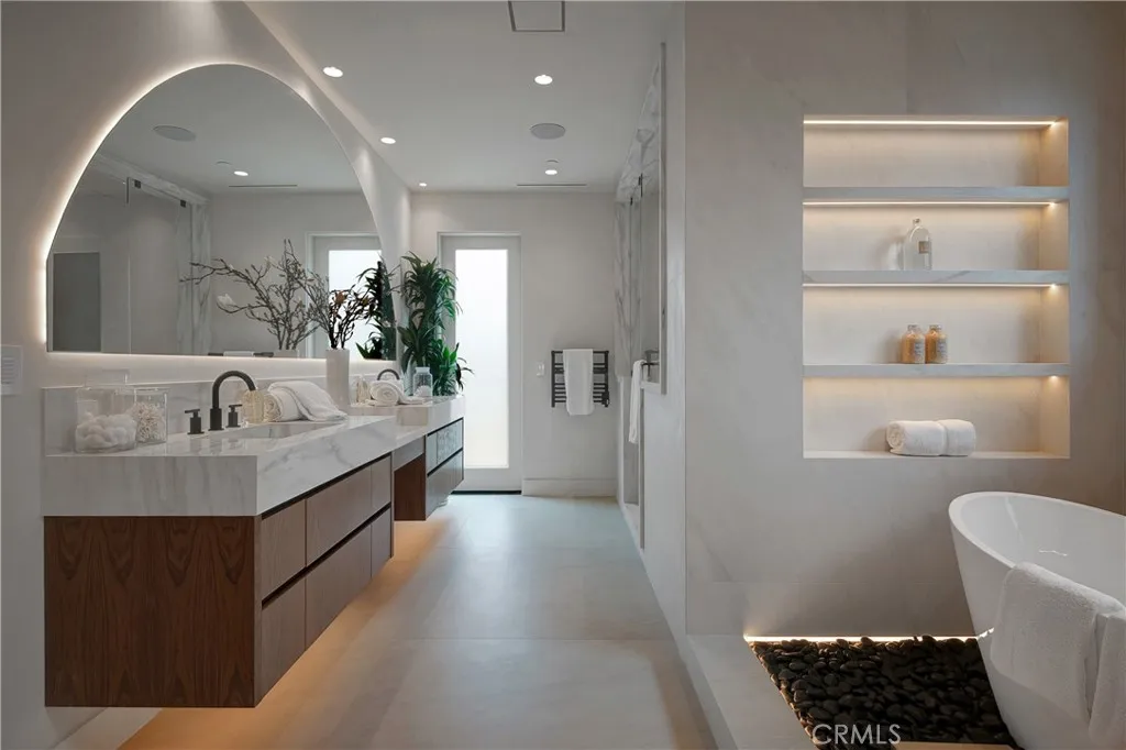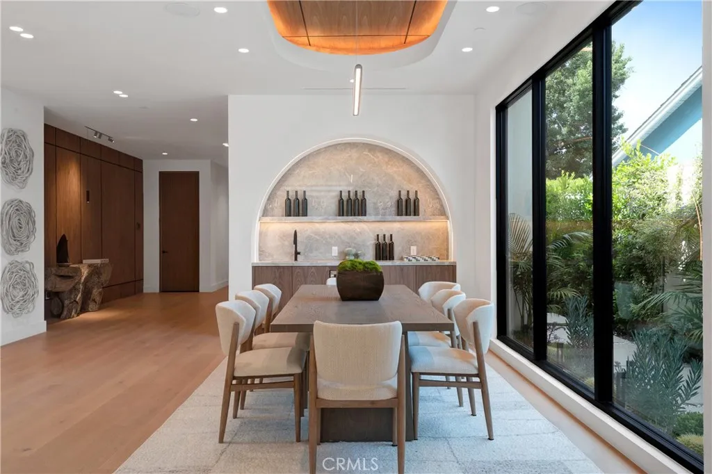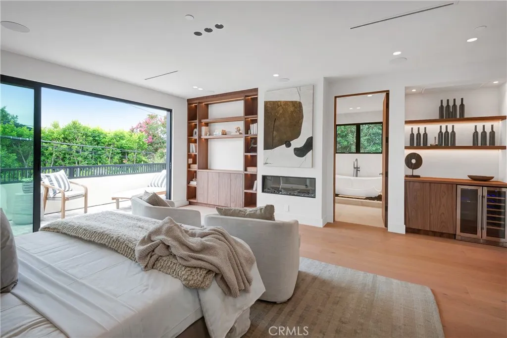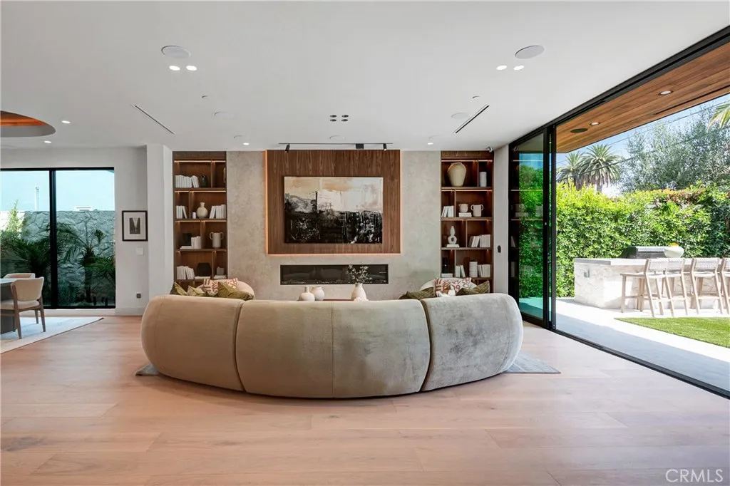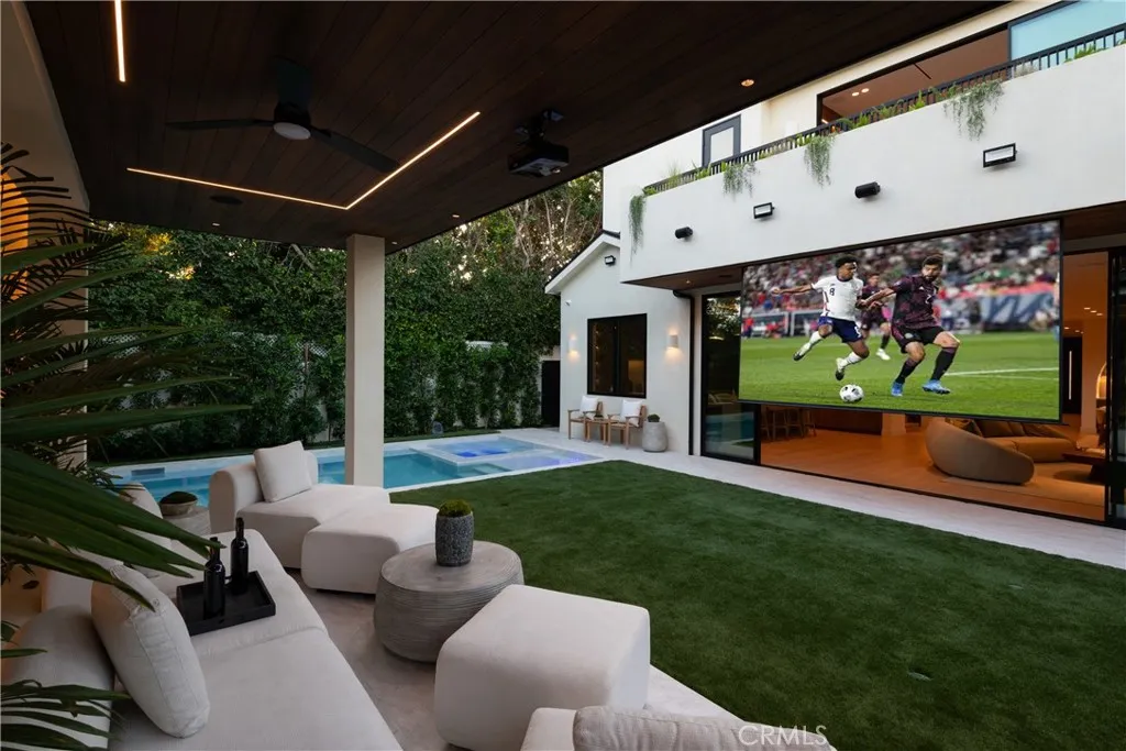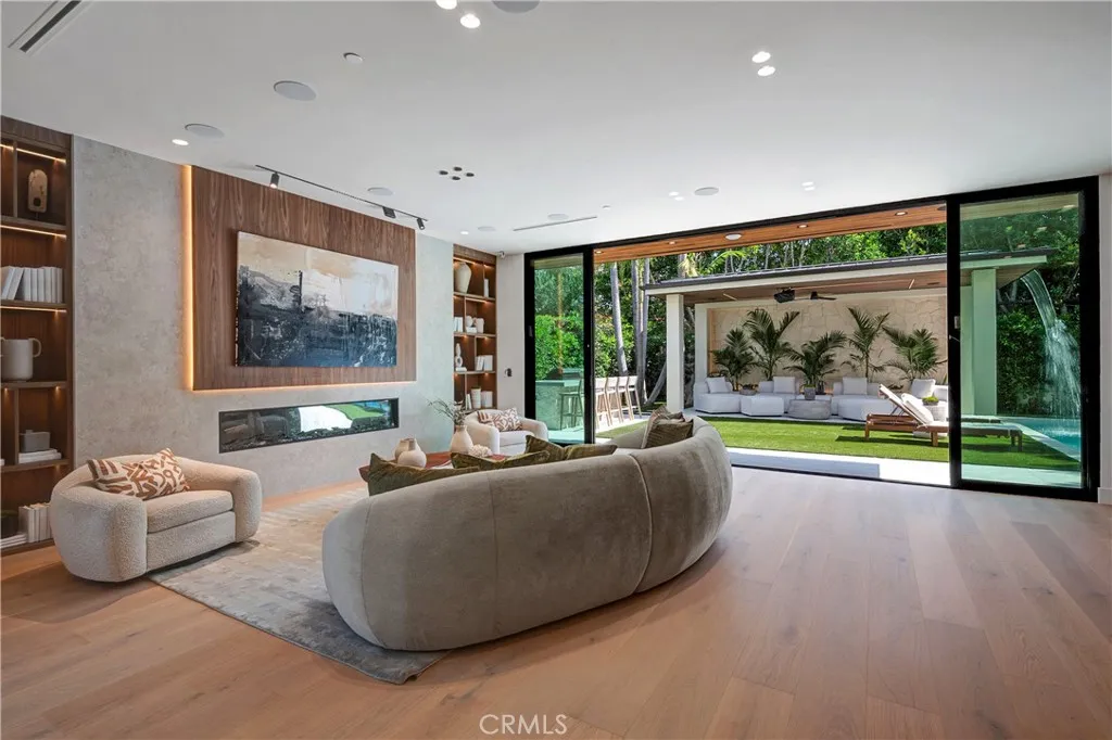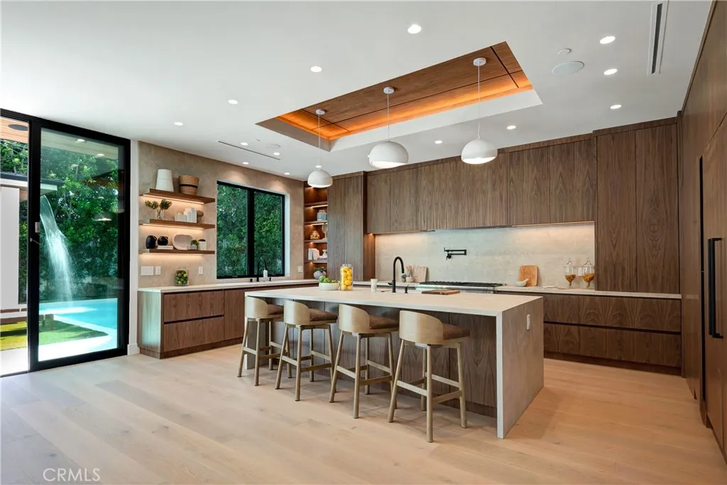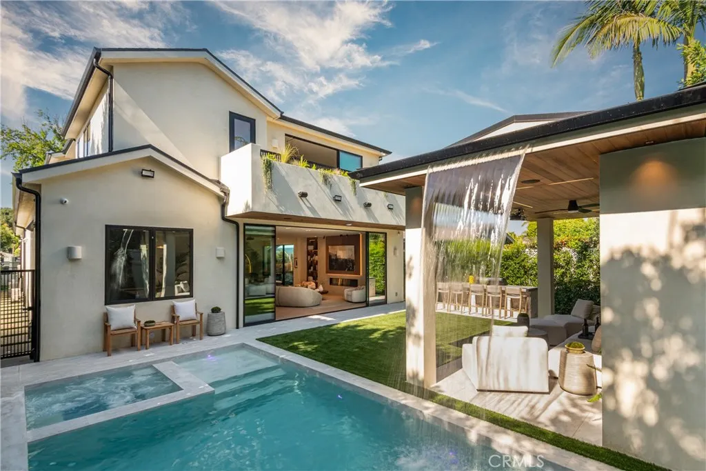 Experience the pinnacle of modern living in this newly constructed organic modern showpiece, where sophistication meets comfort at every turn. Thoughtfully curated with the finest finishes and innovative design elements, this residence offers a seamless blend of elegance, functionality, and style. The open-concept floor plan flows effortlessly from the dining room to the family room, where expansive sliding glass doors open to the backyard. Bathed in natural light, the interiors blur the line between indoor and outdoor living. The gourmet chefs kitchen is a culinary dream, featuring top-of-the-line appliances, an oversized center island with breakfast bar seating, and a walk-in pantry. A cozy yet stylish theater room provides the perfect setting for family movie nights or entertaining guests. The luxurious primary suite serves as a private retreat, complete with a fireplace, wet bar, custom walk-in closet, and a spacious balcony overlooking serene views. The spa-inspired bathroom offers a soaking tub, oversized walk-in shower, dual vanities, and private balcony access for peaceful morning moments. Step outside to a resort-style backyard oasis showcasing a covered cabana with a waterfall feature, pool and spa, built-in BBQ with bar seating, and an outdoor motorized movie screen with projectorperfect for unforgettable gatherings or relaxing under the stars. Additional highlights include a Control4 smart home system, surround sound throughout, a security camera system, and a prime location near Westfield Fashion Square, Ventura Blvds premier dining and shopping, and top-rated