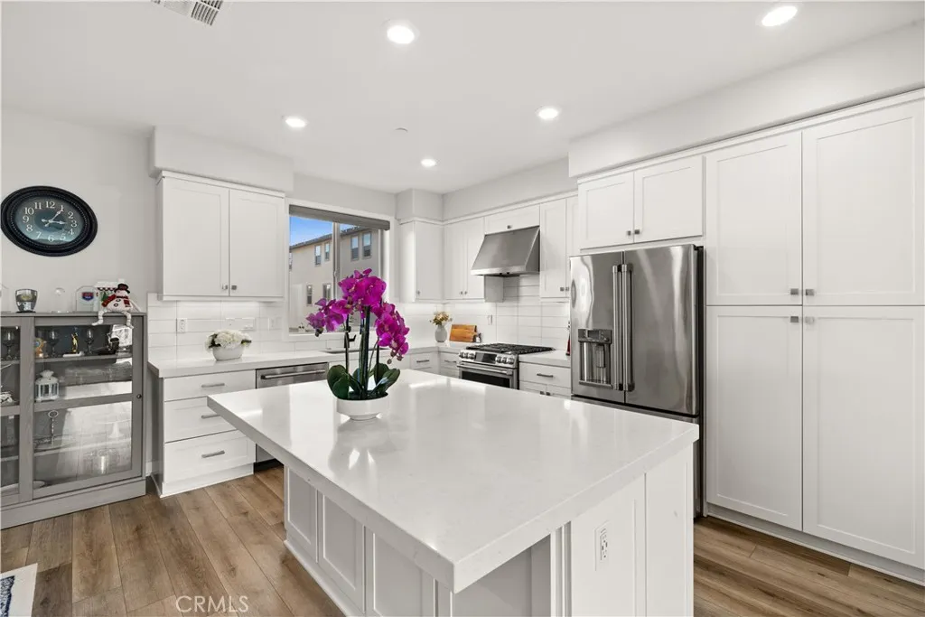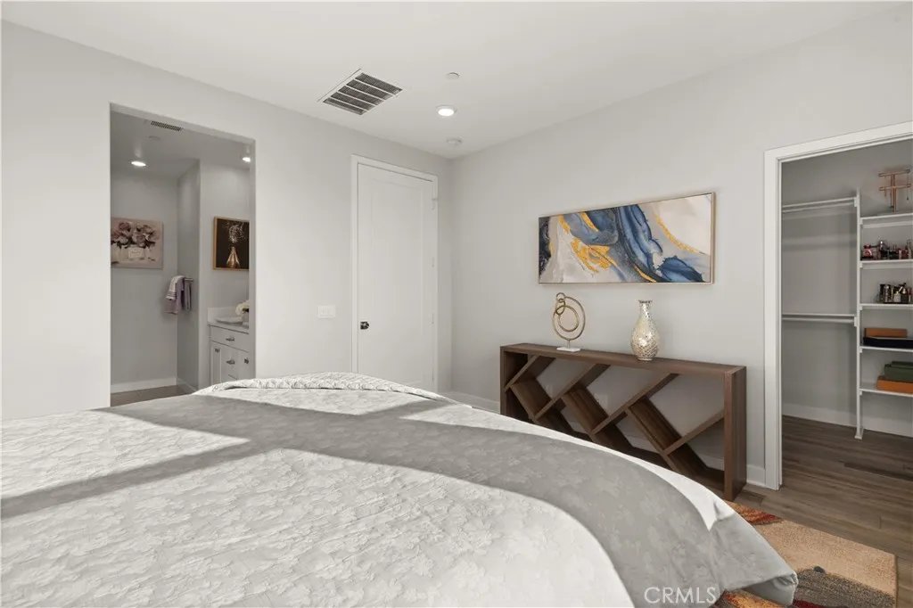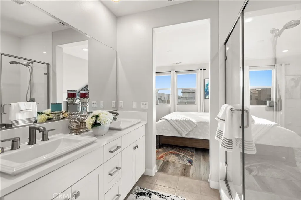 Just steps from Solis Park K-8 and Portola High School! Experience refined living at the Bolero Collection Residence One in the Rise neighborhood, built by Lennar and located in Irvines desirable Great Park community. This beautifully appointed home features 3 bedrooms and 3.5 bathrooms, including a convenient main-level bedroom and bath, across approximately 2,069 square feet. Modern upgrades include luxury vinyl plank flooring, custom window coverings, LED recessed lighting, solar panels, a whole-house water conditioner, and an attached two-car garage. The gourmet kitchen offers quartz countertops, a full backsplash, and stainless-steel appliances, while the private deck provides the perfect outdoor retreat. Residents enjoy access to Great Park amenities, nearby Woodbury Center, and are within walking distance of award-winning Irvine schools.