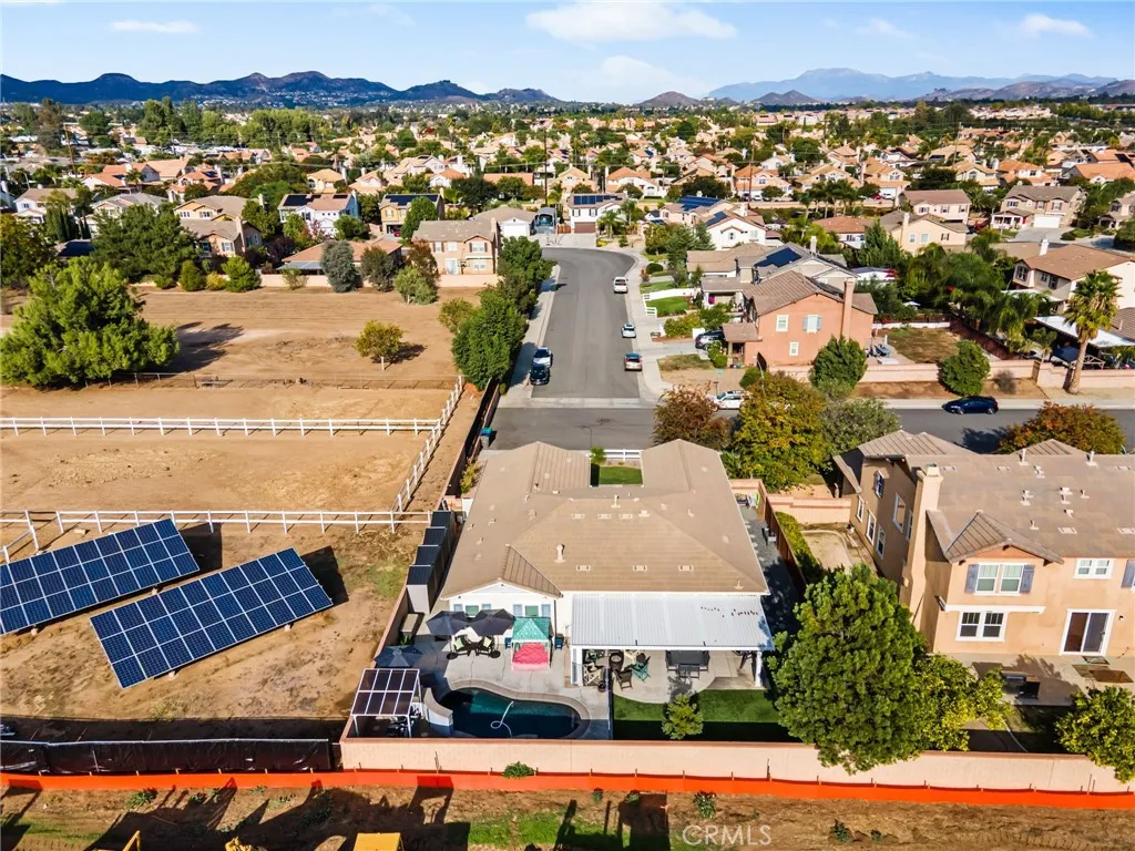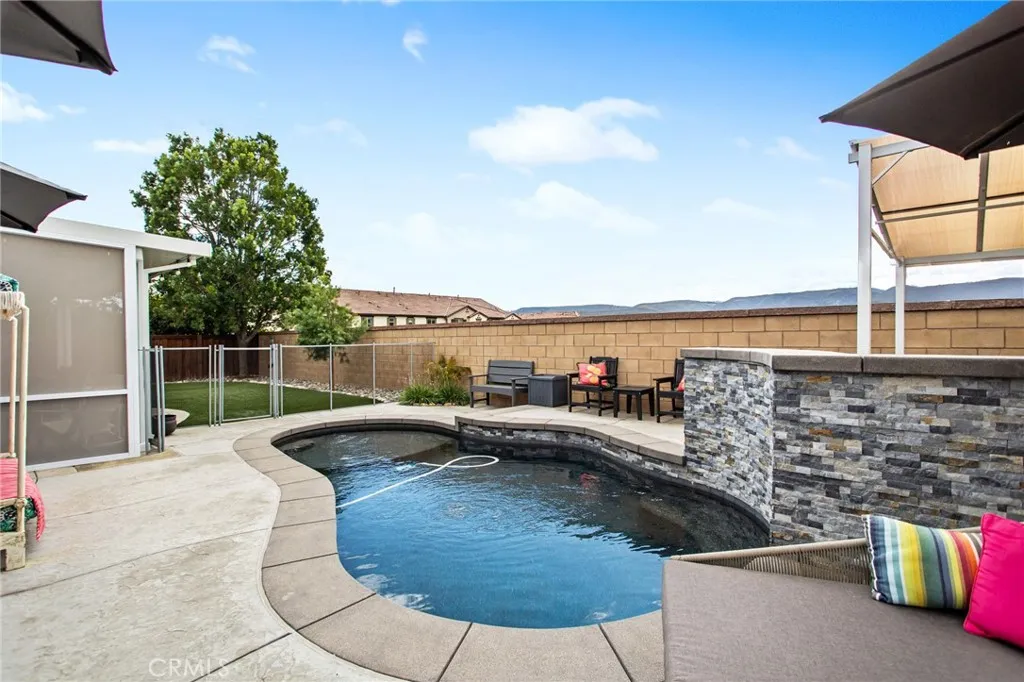 Welcome to this beautifully upgraded single-story home located in one of West Murrietas most desirable neighborhoods. This 4-bedroom, 2-bath property blends comfort, functionality, and modern upgrades throughout. The backyard was recently transformed with a brand-new Pebble Tec saltwater pool, artificial turf, and an oversized covered patio, perfect for relaxing or entertaining year-round. Inside, youll find an open and airy layout featuring a spacious family room with fireplace, dining area, and a chefs kitchen complete with a large island, granite counters, stainless steel appliances, and custom cabinetry. Plantation shutters and recessed lighting add a touch of sophistication throughout the home. The primary suite offers a peaceful retreat with a soaking tub, separate shower, dual sinks, and a walk-in closet. Three additional bedrooms and a secondary bath with a walk-in shower provide plenty of space for family or guests. Additional highlights include Milgard dual-pane windows, water softener, rain gutters, ceiling fans, built-in garage cabinetry with workbench, epoxied garage floors with mini split system installed, great for a gym or hangout space, and an EV charger. The home is wheelchair accessible and features a widened driveway for added convenience. Enjoy the privacy and quiet of this well-kept community, just minutes from award-winning Murrieta schools, shopping, parks, and freeway access.