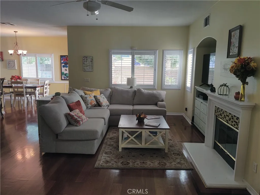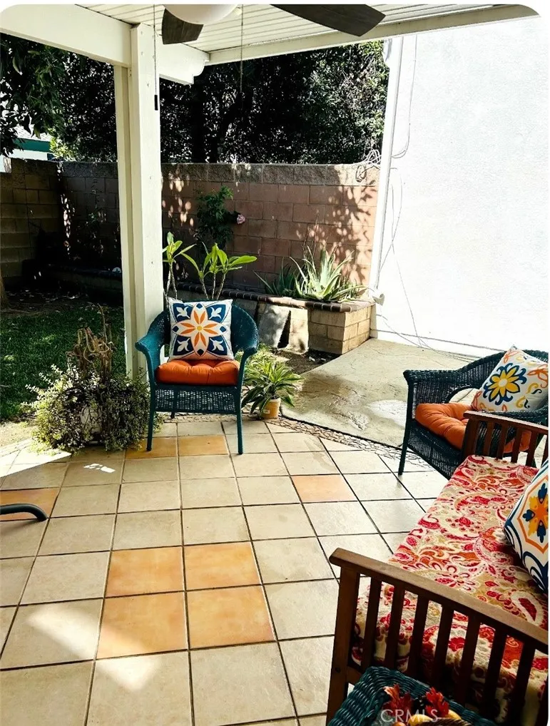 Welcome home to this beautifully maintained 3-bedroom,2.3-bath residence located in a cozy, family-friendly neighborhood just minutes from freeways, shopping, and everyday conveniences. This inviting home features an open- concept living area with engineered hardwood floors throughout the downstairs and the upstairs den, creating a warm and cohesive feel. The modern kitchen boasts granite countertops, newer stainless-steel appliance, and ample storage - perfect for cooking and entertaining. French doors open to a cozy back patio and grassy yard with established trees, offering excellent shade and enhanced privacy. A cinderblock fence and no rear neighbor add to the peaceful secure setting. The backyard also includes a durable Aluma-wood patio cover, ideal for year-round outdoor enjoyment. Upstairs, the master suite features an ensuite bathroom and a walk-in closet, accompanied by two additional bedrooms, a full bathroom, a laundry room, and a versatile den-perfect for a home office, playroom or media space. Recent upgrades and updates include Newer HVAC /AV, Newer water heater, Whole house plantation shutters, Whole house water filtration system (2023), Exterior paint completed in 2024. Located just two doors down from the neighborhood park, this home is cozy, super clean, and exceptionally well maintained- a perfect fit for families for anyone looking for comfort, convivence and move-in ready living.