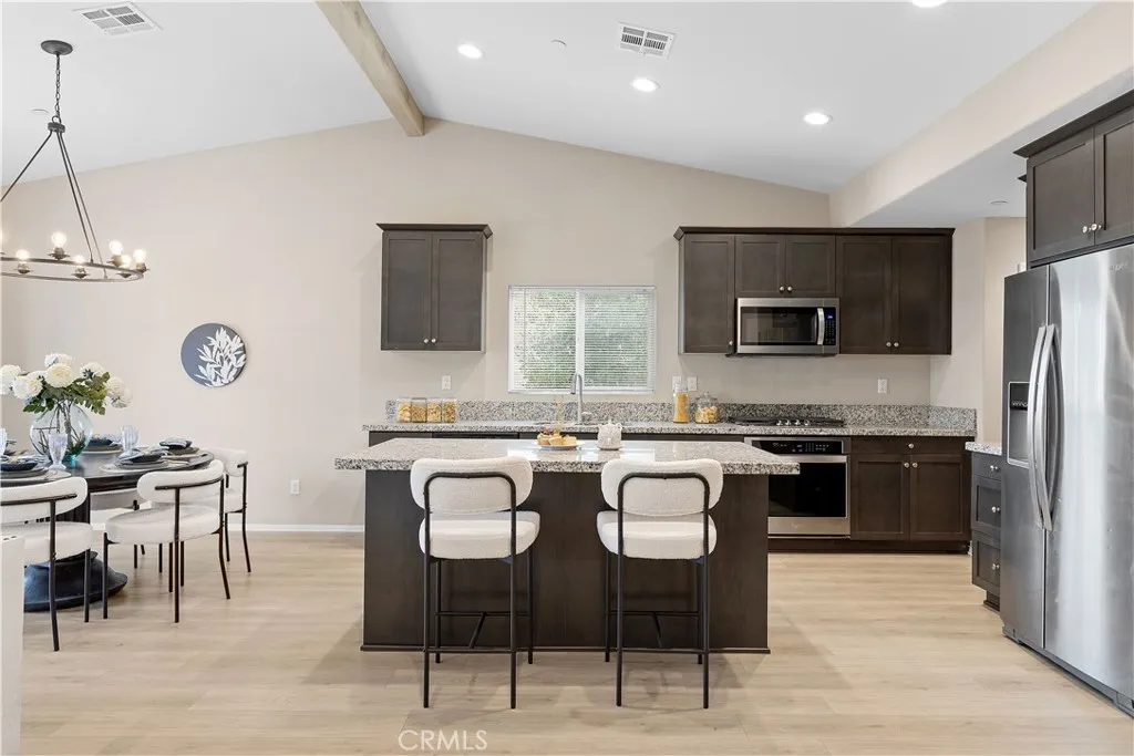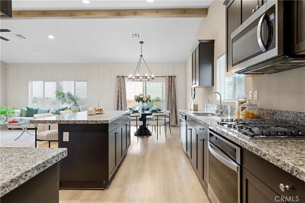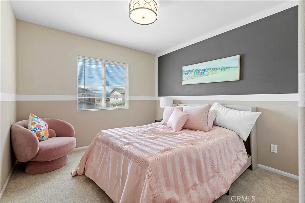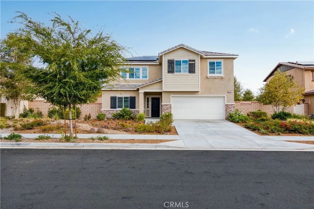 Experience luxury living at 24078 Kerrigan Dr, a beautifully designed, nearly-new home situated within Menifee's esteemed Audie Murphy Ranch community, complete with a FULLY PAID-OFF SOLAR SYSTEM. Built in 2022, this modern residence features 5 spacious bedrooms, 3 baths, and approximately 2,537 sqft of elegant living space and 7,122 Sqft lot size. A ground-floor suite and master suite offers convenience and privacy, while upstairs a bonus room and three additional bedrooms provide flexibility for guests, home office or family needs. The heart of the home is the bright, open kitchen with a large island and breakfast bar, premium shaker-style cabinets, granite countertops, built-in oven and gas cooktop. Designer touches throughout from faux wood beams and recessed lighting to custom paint add polish and sophistication. Smart-home technology and energy-efficient upgrades round out the homes standout features. Step outside to your covered California-room patio, perfect for entertaining or relaxing in Southern California weather, and enjoy the rich amenities of Audie Murphy Ranch pool, spa, playgrounds, trails, sports fields and more. With a central location in Menifee, this home offers lifestyle, space and value in one exceptional package!
