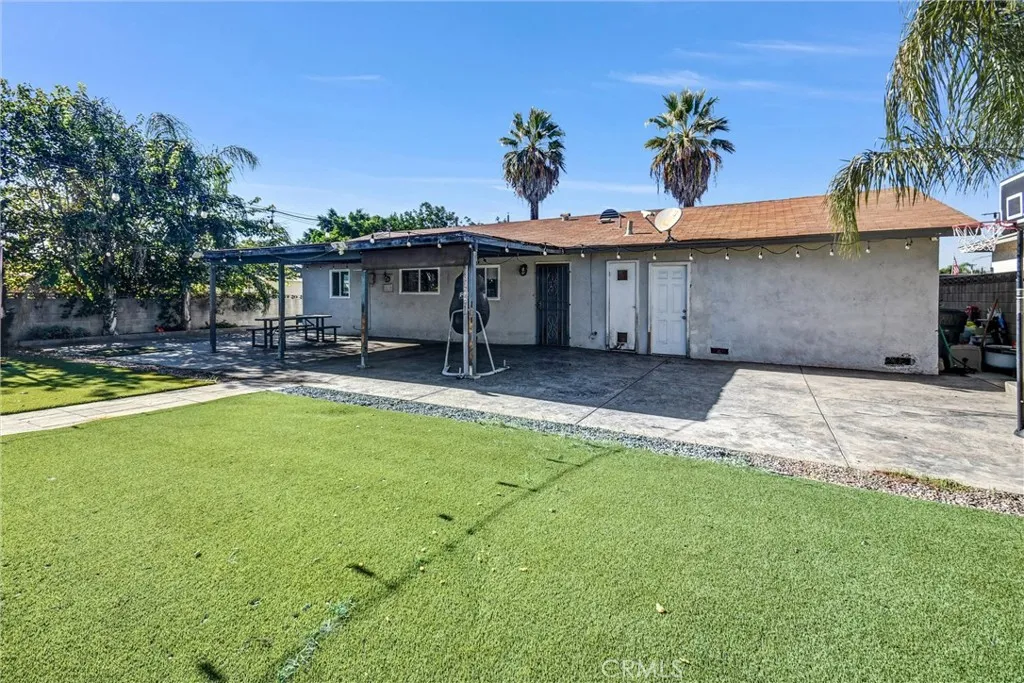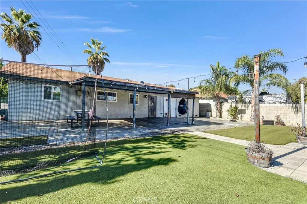 Located with easy access to the 10 Freeway, here you have a wonderful 4 Bedroom and 2 bath HOME with 2 car garage, plus a 50-foot driveway, potentially big enough for RV or extra Parking! You'll love the updated flooring throughout the home as well as the Upgraded Kitchen. Updated windows. Mature palm trees on site. The home is good size and offers a HUGE backyard with covered patio, perfect for entertaining guests or relaxing! There's even a small GOLF putting green! Schools, restaurants, and shopping are all nearby! The Montclair PLAZA is delightful and nearby as well. This home is READY for you! Come see it today!