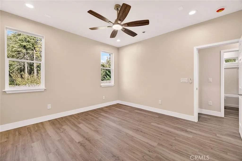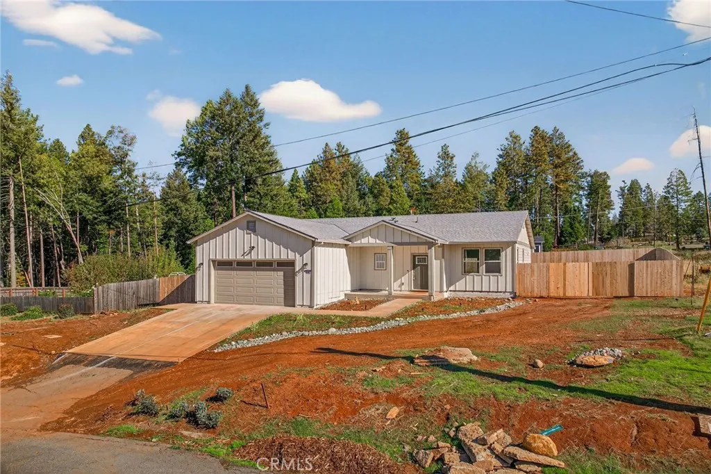 Brand New BEAUTY on the market! Drive up the extended driveway and marvel at the gently landscaped yard with irrigation installed, and the covered front porch. As you walk into the home, notice the foyer and open space! This home offers a nice and clean look with amazing upgrades such as being pre-wired for a security system, recessed lighting, fire sprinklers, and an electric fireplace for those cool nights! To your left is a large laundry room, equipped with a sink, and even a storage room! That's not all! There is a storage closet in the living area, and a pantry in the kitchen! Make your way to the kitchen and gaze at the large farm style sink, Quartz counters and island, soft close drawers and cabinets, and brand-new appliances! Down the hall you will find three nicely sized bedrooms equipped with ceiling fans, and the guest bathroom complete with Quartz counters and a shower/tub insert! The primary bedroom has a large walk-in closet and your very own bathroom with a walk-in shower! That's not all! This home also has 8 fully owned solar panels to give you a breather on that electricity bill! The backyard is large and fully fenced and even has a large gate to store your RV, trailers, or any other toys! Builder even installed a brand-new septic! Need even more perks? Say less! This home is part of Paradise Pines Property Owners Association which gives you access to a seasonal Olympic sized pool, large hot tub, hiking trails, playground, tennis courts, and more! Come view this beauty today and be prepared to fall in love!