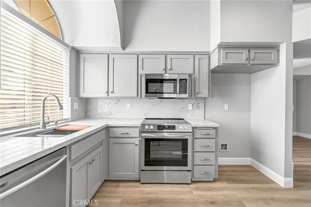 Beautiful custom home on a cul-de-sac in the Club Capri gated community located in the desirable Woodward Lake/Northeast Fresno and in the Clovis Community School District. This home has just been completely renovated with luxury vinyl plank flooring, (LVP), new interior paint, baseboards, recessed lighting, blinds in each room, new light fixtures and much more. The kitchen upgrade includes new cabinet doors, nickel finished fixtures, new quartz countertops, a deep stainless steel work station sink, new stainless steel range with gas burners, new stainless steel dishwasher, and more. The dining room/great room combination offers a beautiful new nickel finished light, a zero clearance fireplace, blinds, and an outstanding vaulted ceiling, The primary bedroom is spacious with a large closet and the primary bathroom has an outstanding sunken tub, quartz countertops, porcelain tile shower, separate commode area, dual sinks and more. The second bedroom is spacious and has new a fan/light. The hall bathtub and shower have been refinished with quartz countertops, a new sink with new flex plumbing and porcelain tile in the shower/tub. The utility room is located inside near the attached 2 car garage with automatic opener and a storage area. The HVAC was replaced last year. The backyard offers a combination of attractive landscaping, and a covered patio. Woodward Lake Community Clubhouse and pool are also included in the HOA, along with a separate pool area for Club Capri and your water bill This gorgeous, renovated home will please any buyer and make them happy to call it their hom