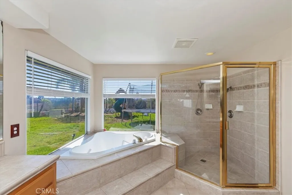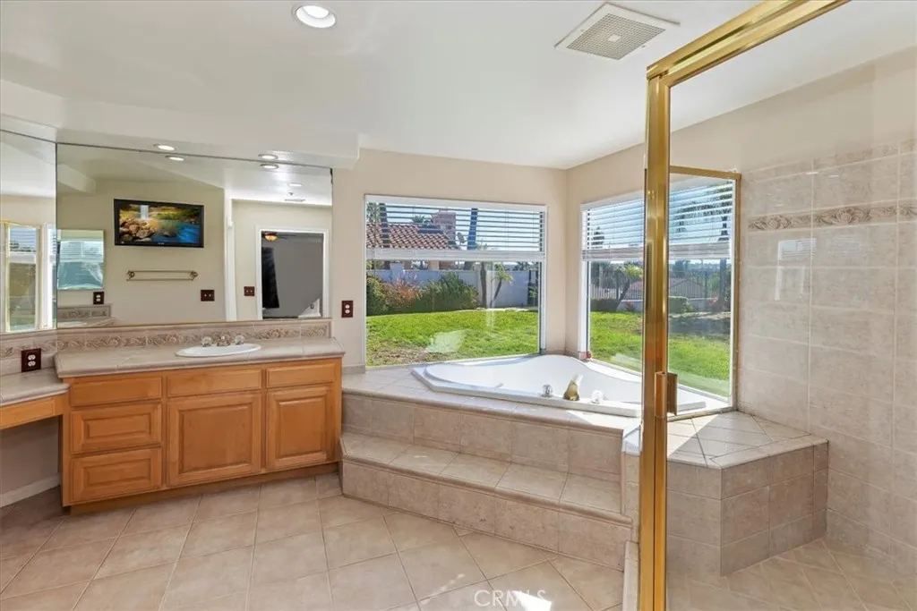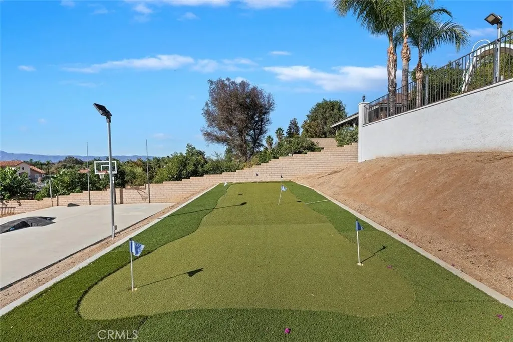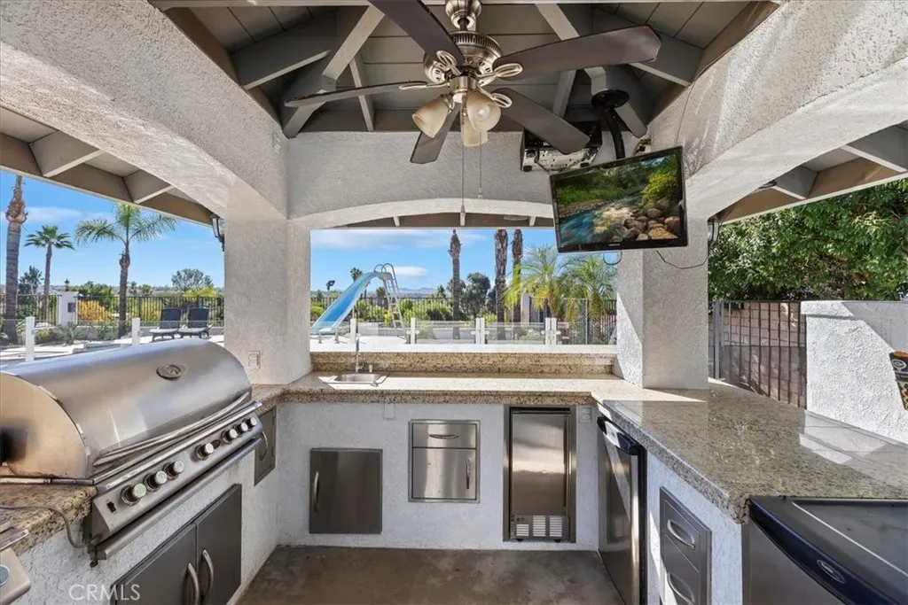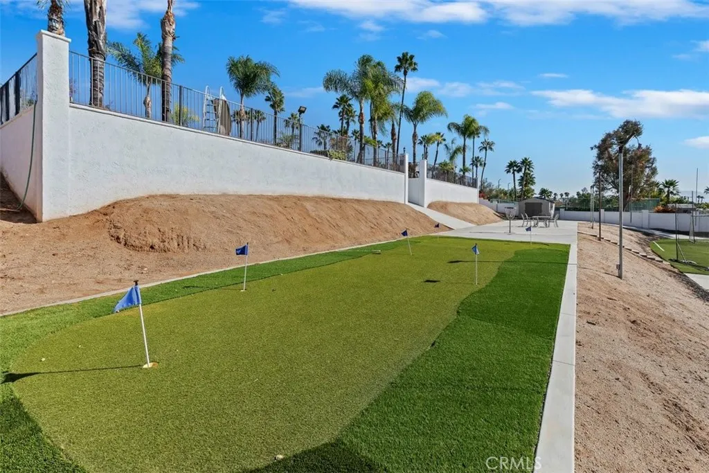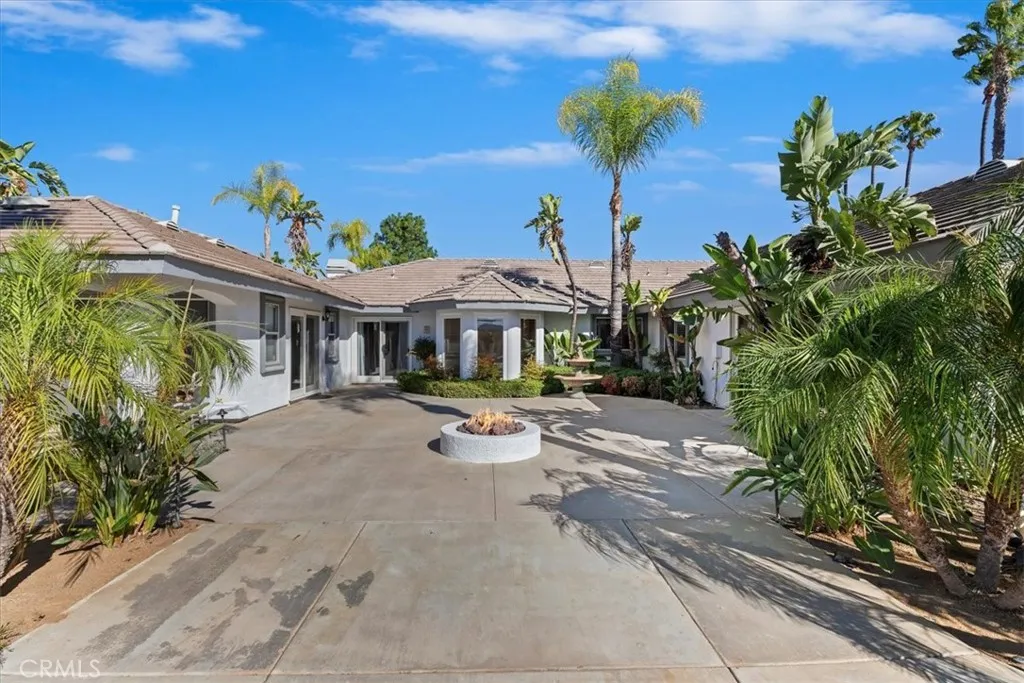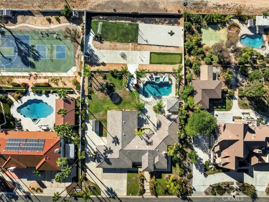 Discover the epitome of elegance in this remarkable single-story estate, set on more than three-quarters of an acre in the coveted Hillcrest community. Designed for both luxurious comfort and unforgettable entertaining, this property combines sweeping views, refined interiors, and resort-style amenities into a true dream home. Inside, the home welcomes you with timeless sophistication. A formal living room with a cozy fireplace sets the tone, while the elegant dining room is ideal for hosting special occasions. The expansive family room features a second fireplace and sleek wet bar, seamlessly blending warmth and functionality. At the heart of the home, the chefs kitchen impresses with custom maple cabinetry, a butcher block island with prep sink, and premium finishes crafted for culinary excellence. The versatile layout includes four spacious bedrooms, a dedicated office, and a game room, offering the perfect balance for work, relaxation, and play. The primary suite provides a private retreat, while every corner of the home reflects thoughtful design and generous proportions. Step outside into your private backyard oasis. Entertain with ease at the built-in outdoor kitchen with BBQ and fire pit, or relax by the sparkling pool and spa. For recreation, enjoy stadium-lit sports courts and a six-hole putting green. With rear access to the lower lot, theres also room to add an ADU, workshop, or additional amenities to suit your lifestyle. Practical luxury continues with a finished four-car garage featuring custom cabinetry, upgraded doors, epoxy flooring, and gated RV parking.