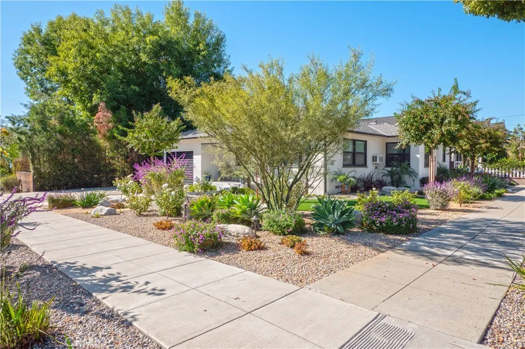 Welcome to this beautifully updated home on a prime corner lot in Upland. Every major update has been solidly completed including a newer roof, a fully updated electrical system, ceiling fans throughout, and a beautifully remodeled main bathroom. Inside, youll also appreciate a dedicated indoor laundry area for everyday ease. Step into the living room, and youre greeted by bright natural light that pours in and highlights the inviting space. The room is designed to feel cozy and comfortable a perfect place to relax, entertain, or unwind after a busy day. The modern, neutral-tone palette and all-appliances-included offer a turnkey environment. The owners have also added a second half-bathroom for added flexibility. Out back, youll find a separate Tuff-Shed converted into a guest room or flexible retreat, plus an additional shed/workshop accessed via the alley ideal for storing tools, hobbies, or even a playhouse. Outside, the landscaping is stunning: mature plantings, fully installed drip irrigation, and a spacious yard that wraps around this prime corner lot. With its excellent location just moments from the shops, cafs, and social energy of downtown Upland, this home offers smart upgrades, modern finishes, and effortless living. Schedule your showing today to experience how everything has been done, and this homes living room truly shines with natural brightness and warmth.