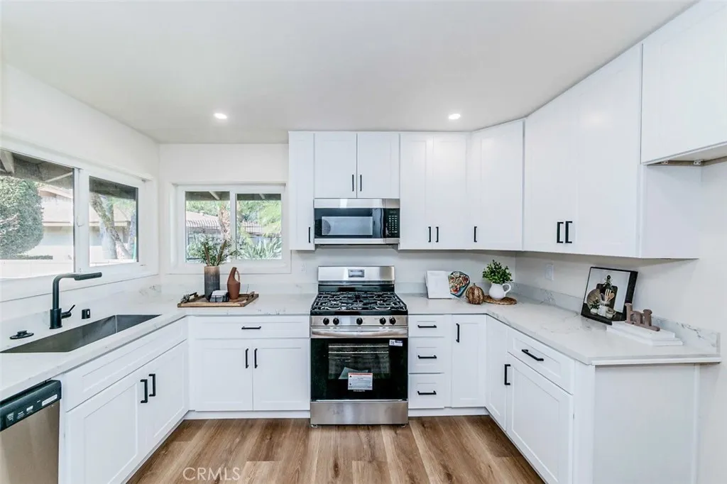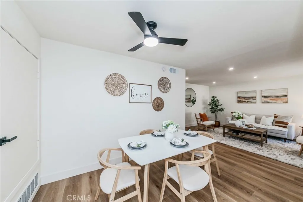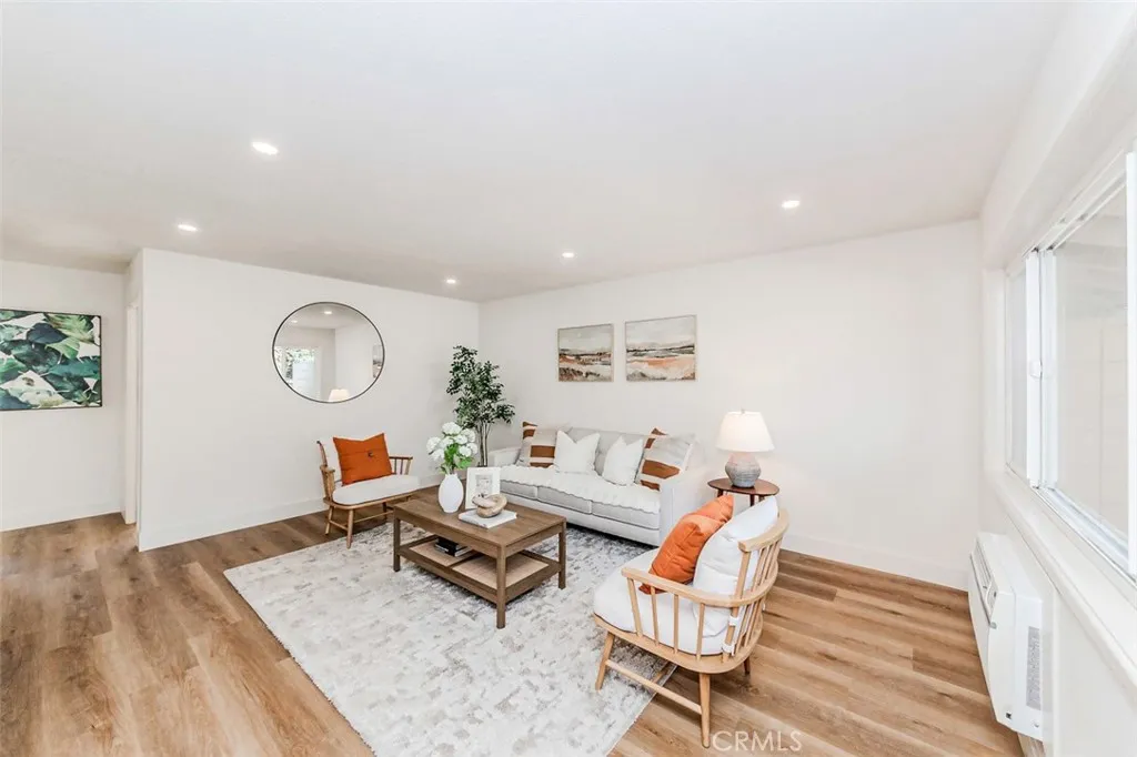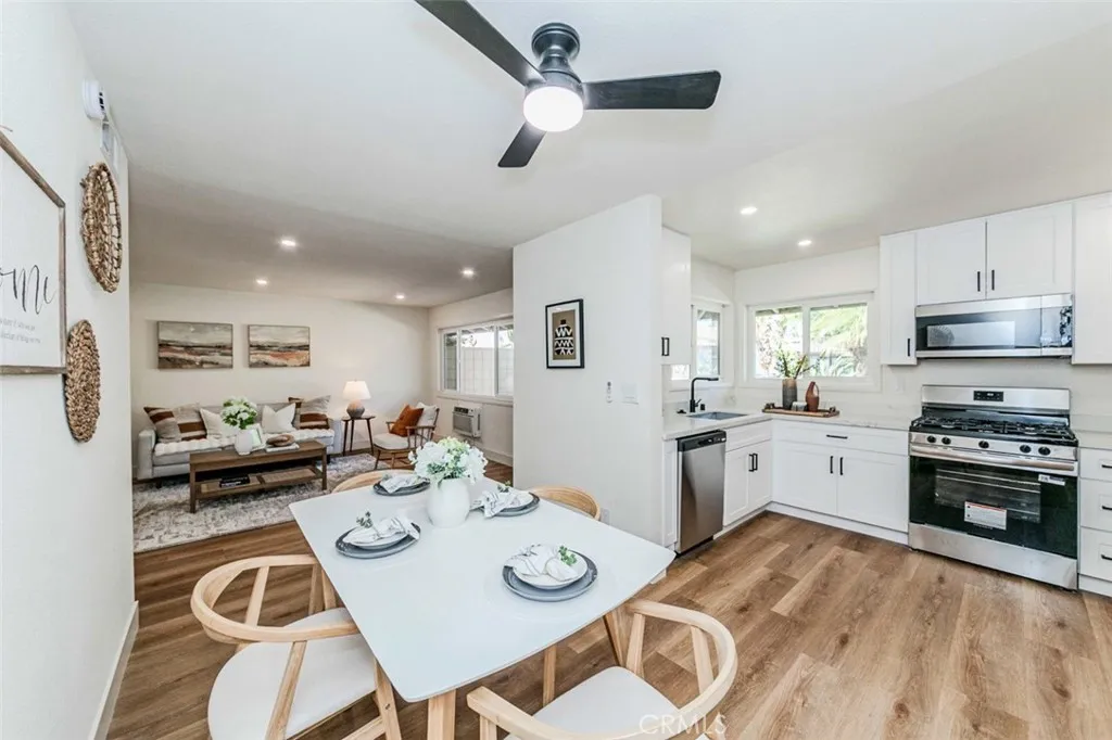Experience modern living in this fully renovated single-level condo in the sought-after Coco Palms community of Fullerton. Featuring 2 spacious bedrooms, 2 beautifully upgraded bathrooms, and 936 square feet of stylish living space, this move-in ready home is perfect for first-time buyers, downsizers, or investors seeking comfort and convenience. Step into a bright, open-concept layout enhanced with recessed lighting, new laminate wood flooring, and ceiling fan lights in the dining area and each bedroom. The stunning new kitchen showcases Quartz countertops, custom cabinetry, stainless steel appliances, a sleek stainless-steel sink, and a modern faucetideal for everyday cooking and entertaining. The bathrooms are completely transformed with elegant finishes, including a new bathtub with a frameless glass enclosure, a walk-in shower in the primary suite, and contemporary vanities and fixtures. Enjoy year-round comfort with central heating and a wall-mounted A/C unit. A detached one-car garage provides added storage and parking convenience. Residents of Coco Palms enjoy beautifully maintained landscaping and access to a refreshing community pool. This prime location is just minutes from Downtown Fullerton, Cal State Fullerton, and the highly acclaimed Troy High School. Move right in and start enjoying this turnkey home that blends style, comfort, and locationschedule your private tour today!