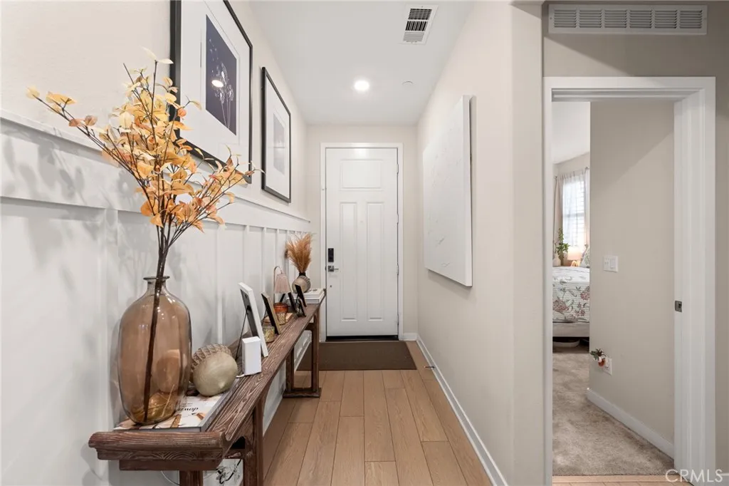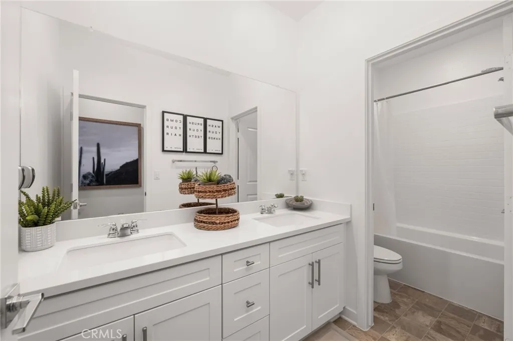 Set in Ontarios desirable Shady Tree-Country Lane community, this newer Lennar home combines open living spaces with a layout that simply makes sense. Perfectly positioned on a corner lot, it offers an added sense of privacy and space with no immediate neighbor on one side and extra room to breathe both inside and out. From the moment you step inside, youll notice how natural it feels with light pouring in through wide windows, clean lines, and a seamless connection between the kitchen, dining, and living areas. The kitchen is stylish and practical with smooth stone counters, warm cabinetry, and plenty of space to cook, create, and gather. Just off the main living space, a downstairs bedroom and full bath make multigenerational living, hosting guests, or working from home easy. Upstairs, four additional bedrooms provide plenty of room for everyone. The primary suite feels calm and intentional, with a spacious walk-in closet and a private bathroom that offers double sinks and a relaxing retreat from the day. A junior suite with its own bath and two additional bedrooms create balance for family or guests, and the upstairs laundry room keeps daily life simple. Out back, the yard is ready for low-maintenance living: thoughtfully landscaped with turf and hardscape so you can spend less time working and more time enjoying. The home also includes free and clear solar, helping keep energy costs low year-round. Beyond your door, the Shady TreeCountry Lane community brings people together. Here, weekends often mean afternoons at the pool, kids playing on the playground, or casual get