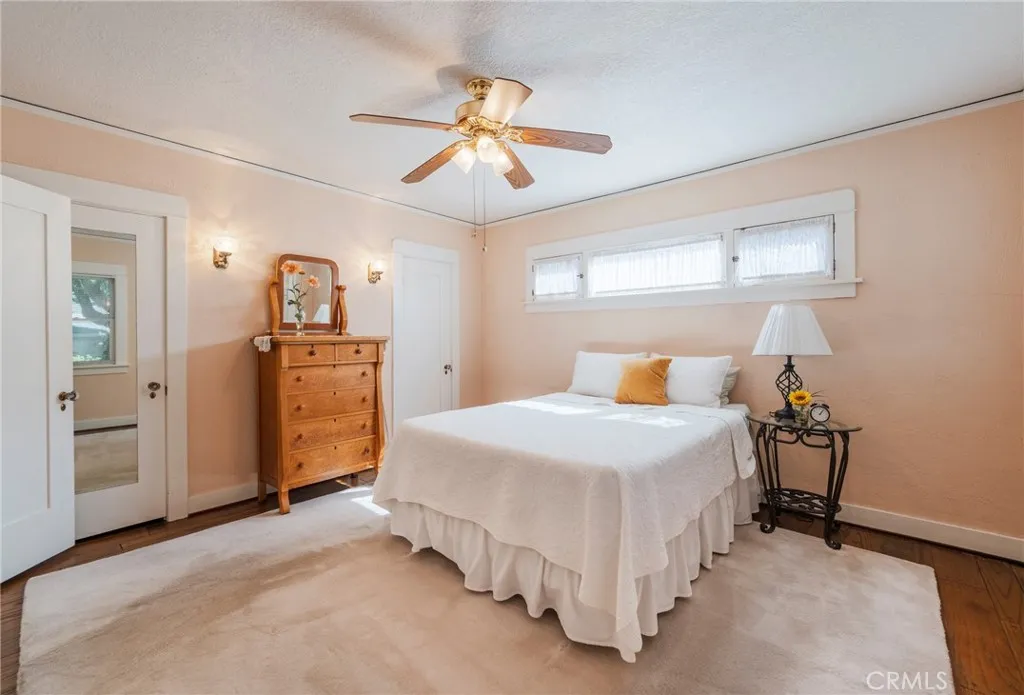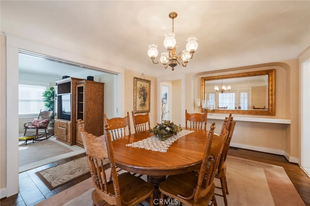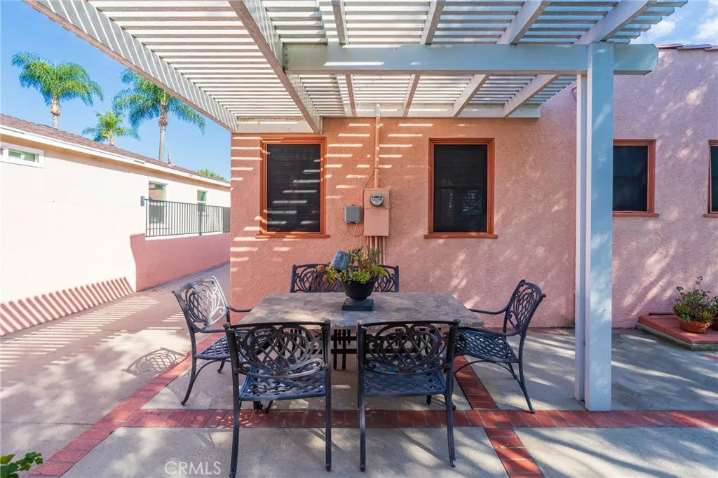 This stunning Spanish Revival home rarely comes to market, set on a gorgeous, quiet street filled with unique custom historic properties in a prized part of the Anaheim Colony Historic District. The vintage elegance inside shines with original architectural details: soaring coved ceilings, a gas fireplace, and expansive room sizes, complemented by the home's hardwood floors, built-in bookcases, and dramatic arched front window. Hosting is easy with the spacious dining room, featuring beautiful pocket French doors to the living room and an exterior French door leading to the front porch for optimal flow. The kitchen has been tastefully updated with real oak cabinets, a pantry, tiled counters, and a fabulous breakfast nook with built-in benches. Out back, a French door leads to a picturesque yard with a covered patio and mature trees that filter the afternoon sun, keeping the house cool. Both bedrooms are large with walk-in closets, and while vintage, the home enjoys the essential modern upgrade of central air and heat, plus a very long tandem garage perfect for two cars or a generous workshop. This home may be eligible for the Mills Act program through the City of Anaheim where the new owner may be able to save up to 60% off of their property taxes. Location is key: you're just blocks from beautiful Pearson Park (duck pond, courts, events) and a short distance to the vibrant dining and entertainment of the Center Street Promenade and Packing District, with the 5, 91, and 57 Freeways minutes away. This home truly is the whole package.