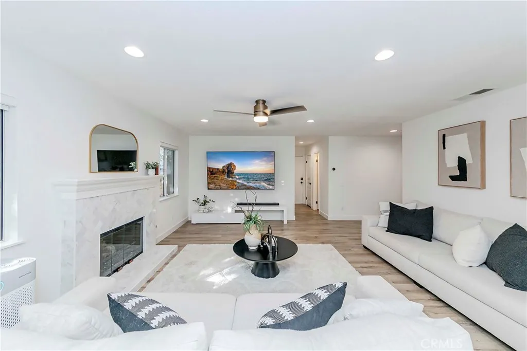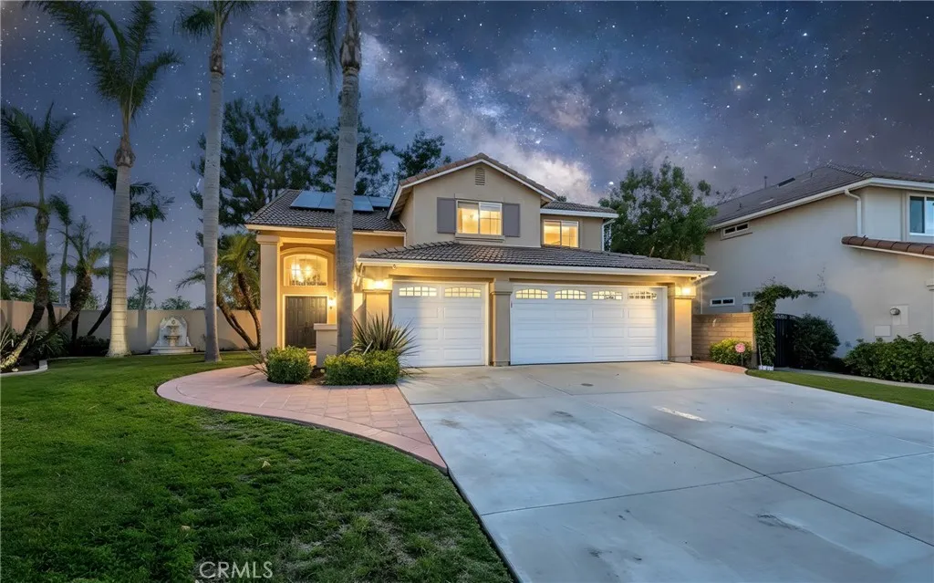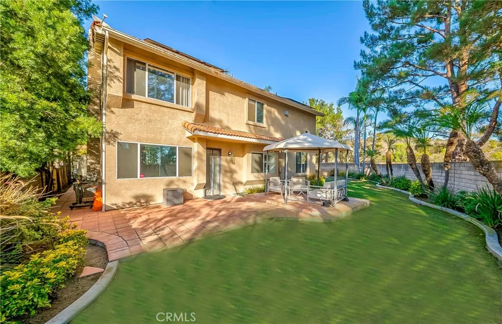 Beautifully Upgraded Home in the Highly Sought After Fieldstone Terrace Community. The spacious living room features cathedral ceilings, tall windows that fill the space with natural light, and an adjacent formal dining area, perfect for entertaining family and friends. The remodeled kitchen is a true showpiece, offering elegant cabinetry with abundant storage, quartz countertop, all new Kitchen Aid oven, microwave, dishwasher, and Wolf stove, beautiful full backsplash, recessed lightings, bay window, and generous counter space. It opens seamlessly to the breakfast nook and family room, creating a warm and inviting space for everyday living. The main floor includes a bedroom with a bath, currently used as a private office but easily convertible into 5th bedroom, providing excellent flexibility for guests or multi generational living. Additional conveniences include an inside laundry room and direct access to the 3 car garage. Upstairs, the luxurious primary suite features double door entry, vaulted ceilings, sky lights, mirrored walk-in closets, and a bath with a glass enclosed shower, soaking tub, and dual sinks. Three additional spacious bedrooms share a beautifully remodeled bath with double sinks and a glass enclosed shower. Step outside to your private tropical retreat, a beautifully landscaped backyard with mature greenery and plenty of space for entertaining or relaxing. This home also features solar panels, providing substantial savings on electricity costs year round. Residents of the Fieldstone Terrace community enjoy access to resort style amenities, including a