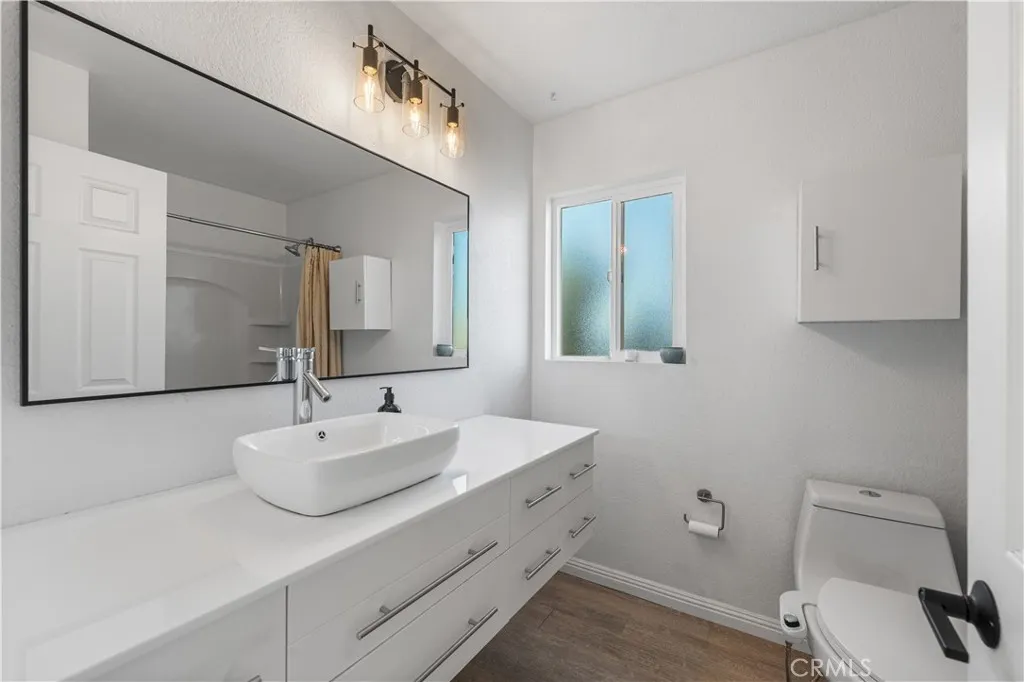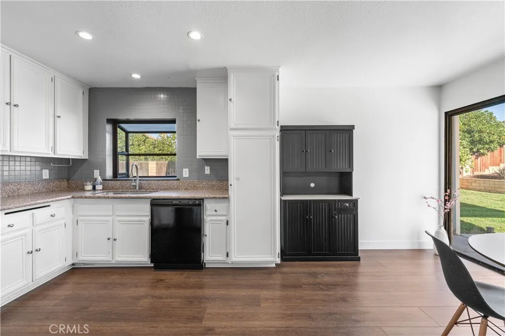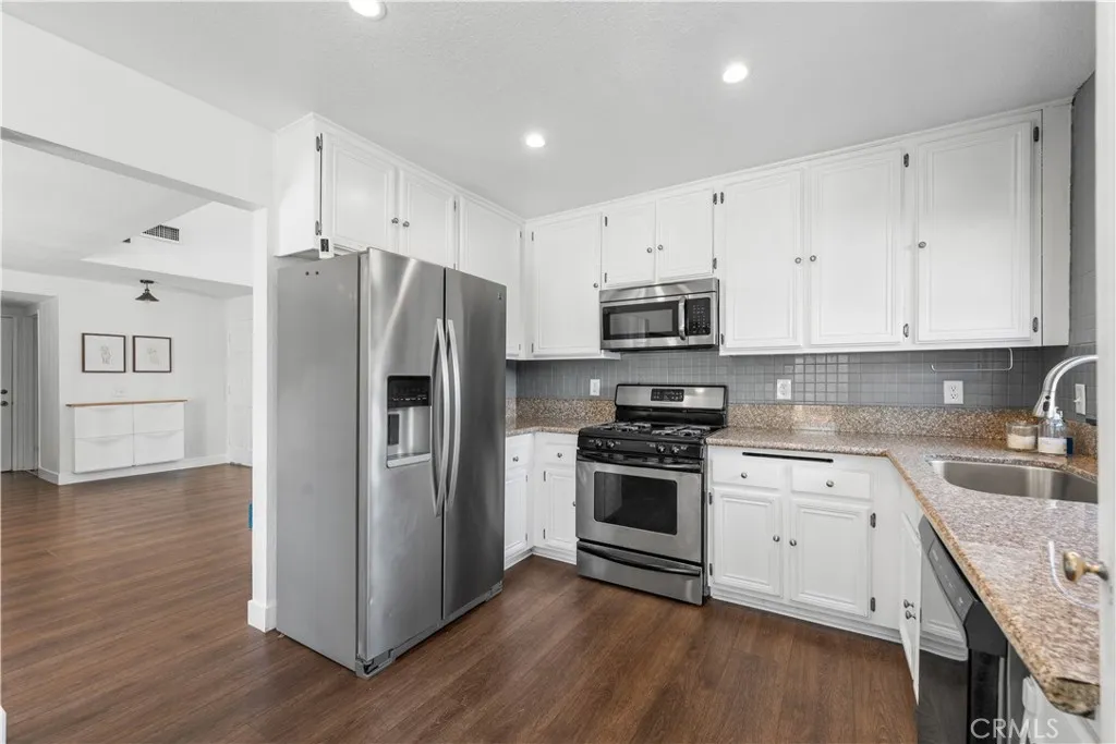 Welcome to your serene retreat a bright and stylish residence that perfectly blends modern updates with warm, inviting design. From the moment you arrive, the homes clean lines, expansive driveway, and red-tiled roof exude classic California appeal. Step inside to soaring ceilings and sunlit open spaces. The spacious living and dining areas flow effortlessly together, featuring elegant water resistant LVP (40mm wear layer) flooring, fresh white walls, and sleek black rail accents that add a touch of sophistication. Sliding glass doors open to a large backyard patio, ideal for indoor-outdoor living and effortless entertaining. The updated kitchen boasts crisp white cabinetry, granite countertops, and - Included stainless-steel appliances package a perfect space for both everyday cooking and special gatherings. Just beyond, a cozy half bath features contemporary finishes and a splash of artistic flair with a stained-glass window. Upstairs, unwind in the relaxing primary suite complete with a private balcony overlooking the lush yard, perfect for morning coffee or sunset views. The ensuite bathroom is tastefully modern, featuring a sleek vessel sink, stylish lighting, and abundant natural light. Additional bedrooms and an airy loft area offer versatility for an office, reading nook, or guest accommodations. Step outside to discover your own backyard oasis a spacious patio and a pergola-covered deck that invites alfresco dining and starlit evenings. The landscaped yard offers privacy and tranquility, with space to entertain or simply unwind. With a two-car garage, ample par
