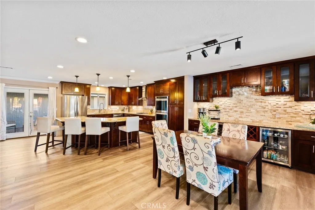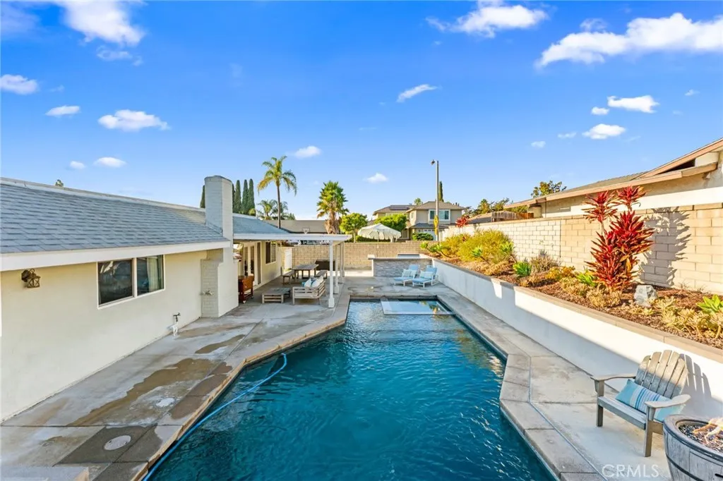Welcome home to your completely remodeled entertainers dream with resort-style backyard! This beautifully remodeled four-bedroom, two-bath home showcases an open floor plan and modern finishes throughout. Enter into the spacious great room that flows into the large, upgraded kitchen featuring an expansive island with counter seating and custom beverage bar in the dining area, great for entertaining guests. Step outside the great room to your own private paradise featuring a sparkling pool with a relaxing Baja shelf, waterfall feature, and color-changing lights. The backyard also boasts a custom-built BBQ island and bar with a commercial-grade grill, outdoor audio system, TV hookups, and a covered patioperfect for hosting flexible gatherings or enjoying peaceful evenings at home. More flexible outdoor living extends from the kitchen into a private courtyard, perfect for enjoying a relaxing moment. The primary suite boasts a large, walk-in closet and dual sinks in the remodeled en-suite. Thoughtful updates include a newer roof (approx. 10 years old), complete PEX re-pipe, tankless water heater, and a Halo 5 whole-home water filtration system. The HVAC system was also replaced and upgraded with HEPA and UV filtration, along with new ducting, ensuring year-round air quality and efficiency. This home combines style, function, and resort-inspired outdoor livingmaking it truly one of a kind.