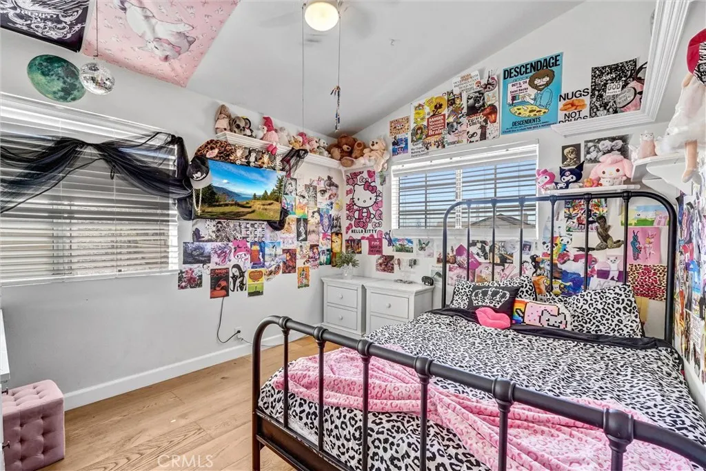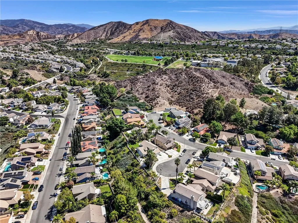 Expansive cul-de-sac lot with sweeping valley and mountain views! Some homes feel ordinary. Others feel destined. Quietly nestled at the end of a peaceful cul-de-sac in Santa Clarita, 22411 Holly Court seems to breathe with its own rhythm calling in those who appreciate beauty, stillness, and panoramic views. From every window, the valley opens wide: palm trees swaying, golden hills stretching beyond the horizon, and sunsets painting the sky each evening. Completely upgraded just a year ago with over $150,000 in renovations, this 4-bedroom, 3-bath residence blends modern refinement with the calm of nature. Approximately 2,214 sq ft of light-filled living space rests on an 8,730 sq ft lot, offering both privacy and room to enjoy the outdoors. White oak wide plank floors, marble, and warm wood tones create a timeless, elegant flow throughout. The open-concept living area welcomes you with soaring ceilings and abundant natural light. The European-inspired kitchen is both functional and striking featuring custom floor-to-ceiling cabinetry with soft-close drawers and doors, a built-in LG elecric oven and microwavr and a Samsung smart French-door refrigerator with touch screen family hub . The sleek design is anchored by porcelain slab countertops large, seamless panels made of fine porcelain stoneware that mimic marble yet are lighter, eco-friendly, and resistant to stains, scratches, heat, and acids. The black porcelain backsplash with gold veining continues up the wall in one dramatic sweep. Downstairs offers a private guest suite or home office with a marble-clad walk- in