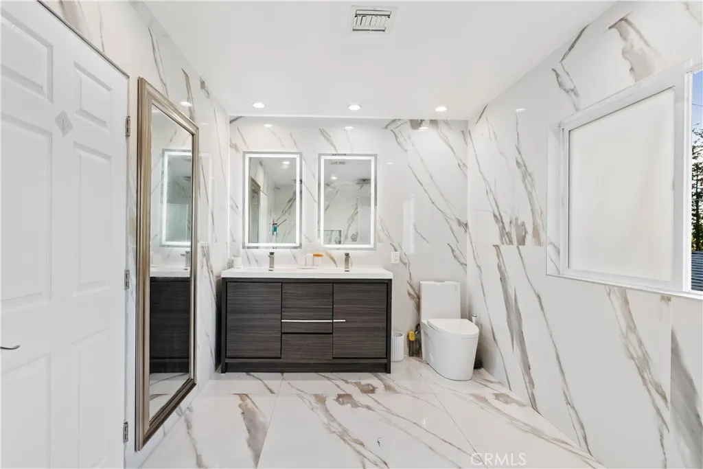 This beautifully renovated 3-bedroom, 3.5-bath home offers modern luxury and move-in readiness in the sought-after Verdugo Woodlands. Featuring elegant marble flooring and an open-concept design, the home boasts a spacious living room with a cozy gas-burning fireplace and a separate dining area that opens to a balcony overlooking the serene backyardperfect for entertaining or relaxing.