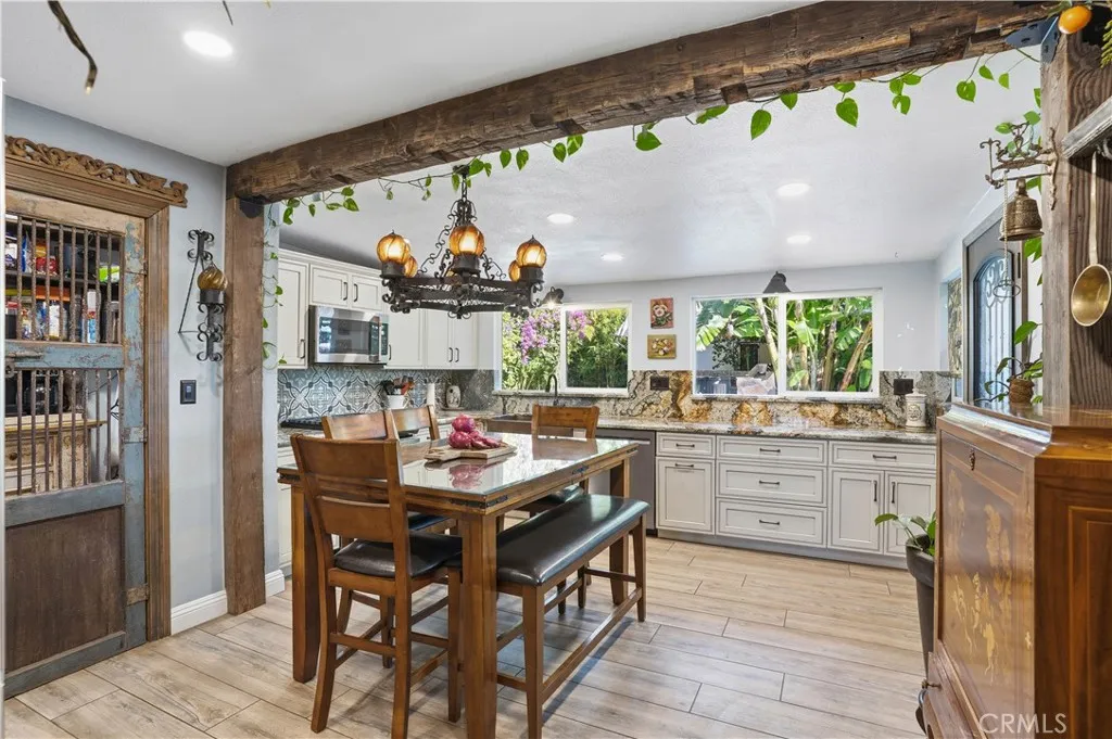 Available first time on the market in over 50 years. This three bedroom, two bathroom is truly one of a kind, both inside and out. Full of custom upgrades and thoughtful design details. Mature fruit bearing trees and bushes through out the grounds. Fruits grown include berry (black, boysenberry, goji) and fruit trees (avocado, apricot, bananas, mango, peaches, pomegranate, oranges, lime). Also a cactus garden area and dragon fruit orchard. Designed for indoor outdoor living. Get ready to host pool parties and fun events. The large spacious kitchen is a chefs dream. Rinse off your fresh home grown fruit in the copper farmhouse sink. Behind the antique Moroccan door is a butlers pantry, perfect for coffee bar set up. Thoughtfully equipped with a reverse osmosis filtration system. A Kitchen is the heart of the home and this space is ready for forever memories. Outdoor kitchen includes Santa Maria and kitchen aid propane grill. Tranquil koi pond by back patio, perfect to relax and unwind at the end of the day. Lush tropical resort style landscape with bamboo for privacy screening. Gorgeous sparkling pool and outdoor shower. Detached oversized 2 car garage with ADU possibilities, room for cars plus workspace. Includes 10X8X8 storage container ideal for lawn equipment storage or holiday decorations. Updated plumbing, electric, and newer roof just over a year old. This is your own slice of Riverside paradise!