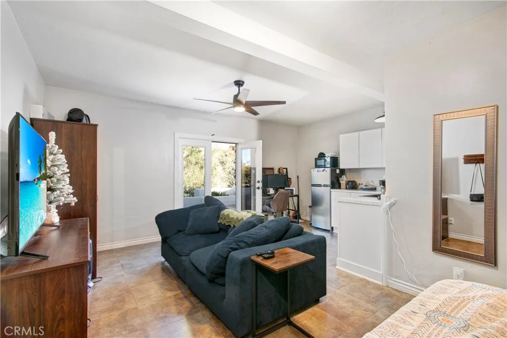 ENJOY MOUNTAIN VIBES WITHOUT THE MOUNTAIN DRIVE! Completely renovated in 2015, this Yucaipa hilltop property is designed for modern living, with one primary feature being a self-contained 400 sq ft studio apartment on the ground floor. Offering a private entrance, a kitchenette, and a full bathroom, this versatile space is the perfect solution for extended family, a home business, or a valuable source of rental income. The kitchenette is equipped with a dishwasher, garbage disposal, a large stainless steel sink, and space for a refrigerator. Ample countertop space allows for convenient use of an air fryer/oven and a stovetop burner. The remainder of the ground level includes the two-car garage with 180 sq ft of additional storage space, and a versatile bonus room perfect for a home theatre, wine room, or workout space. Level two, the main floor, features the front entry. There's a spacious kitchen with a large island, a cozy family room, a convenient half bath, a living room with a fireplace, a bonus space ideal for a home office with amazing views, and two primary bedrooms, each with an ensuite bathroom. The main level also has a deck, perfect for enjoying the panoramic views. The third level includes a landing, two generously sized storage closets, and a primary bedroom with an ensuite bathroom and walk-in closet. The fully landscaped property has a fenced area for relaxing by the pool and spa. For added convenience, 30-amp power and a sewer cleanout are available near the garage, providing the option of accommodating guests in an RV. Additionally, there are 46 solar pane