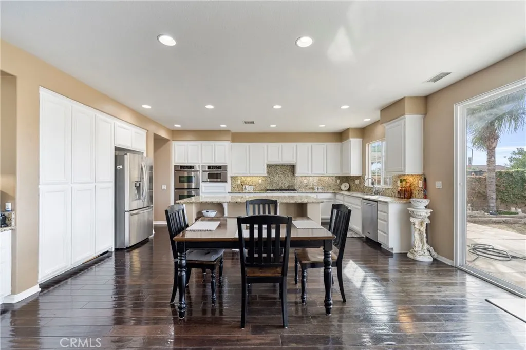 Elegant and UPGRADED 5-BEDROOM, 3-BATH EASTVALE RESIDENCE offering nearly 3,807 SQ FT OF LIVING SPACE in a HIGHLY DESIRABLE NEIGHBORHOOD. A GRAND TWO-STORY ENTRY opens to FORMAL LIVING AND DINING AREAS, an OVERSIZED FAMILY ROOM WITH FIREPLACE, and a GOURMET KITCHEN with GRANITE COUNTERS, CENTER ISLAND, STAINLESS-STEEL APPLIANCES, and ABUNDANT CABINETRY. The MAIN-LEVEL BEDROOM AND BATH provide ideal MULTI-GENERATIONAL flexibility. Upstairs features a SPACIOUS LOFT, a DEDICATED UPSTAIRS OFFICE/HOME WORKSPACE a RARE benefit not commonly found even in newer homes and a LUXURIOUS PRIMARY SUITE with DUAL WALK-IN CLOSETS and a SPA-INSPIRED BATH with SOAKING TUB and SEPARATE SHOWER. On the main level, enjoy an ADDITIONAL BUILT-IN OFFICE DESK FEATURE WITHIN THE FAMILY ROOM perfect for remote work, homework, household management, or last-minute projects a thoughtful upgrade that maximizes comfort, productivity, and lifestyle convenience. Together, these TWO WORKSPACES create a TRUE BEST-OF-BOTH-WORLDS EXPERIENCE HOME, FAMILY, AND BUSINESS FUNCTIONALITY offering FAR MORE VERSATILITY THAN MOST HOMES IN THE AREA, INCLUDING NEW CONSTRUCTION. MAJOR UPGRADES INCLUDE: REAL HARDWOOD AND MARBLE FLOORING on the first level ($26,000 INVESTMENT) REINFORCED TURF FRONT YARD ($6,000) FULLY PURCHASED $45,000 SOLAR SYSTEM (buyer assumes approx. $253/mo SELLER REPORTS SURPLUS ENERGY CREDITS) FRESH INTERIOR PAINT ADDED HEAT PUMP FOR ENHANCED COOLING EFFICIENCY ?? THIS PROPERTY SITS ON ONE OF THE LARGER LOTS IN THE AREA SIGNIFICANTLY LARGER THAN MOST NEWER CONSTRUCTION HOMES PROVIDING SPAC