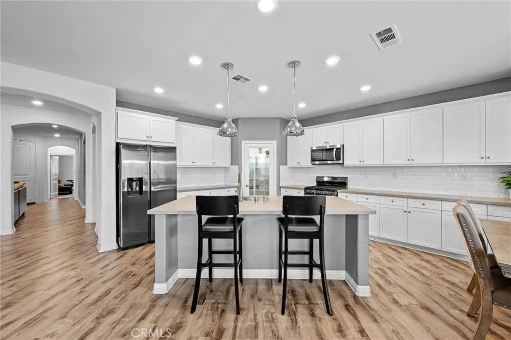 Very well-kept and upgraded single-level home offering 4 bedrooms, 3 baths, and approximately 2,273 sq. ft. of living space on a 6,599 sq. ft. lot. This home is situated in a desirable neighborhood with no HOA and no Mello-Roos taxa rare find in todays market! This beautifully upgraded home features high-end finishes and carefully selected details throughout. Enjoy an open-concept floor plan with a stunning chefs kitchen featuring a large entertaining island, quartz countertops, designer backsplash, upgraded cabinetry, and updated finishes that flow seamlessly into the living and family roomsperfect for gatherings and entertaining. Additional highlights include wood plank tile flooring, built-in speakers, double-pane windows with shutters, a whole-house fan, and a tankless water heater. The Family Room and Primary Bedroom both feature sliding doors that open to the backyard, creating an ideal indoor-outdoor living experience. The primary suite offers a spacious retreat with a luxurious ensuite bathroom featuring a separate shower and soaking tub, full backsplash detailing, and an oversized walk-in closet. The home also includes a dedicated office with French glass doors, a 3-car tandem garage, and beautifully landscaped front and back yards perfect for relaxing or entertaining. Conveniently located near the Kaiser Permanente Medical Offices and close to shopping, schools, and local amenities. Single-level homes like this are rare in Hesperiadont miss the opportunity to own this exceptional property!
